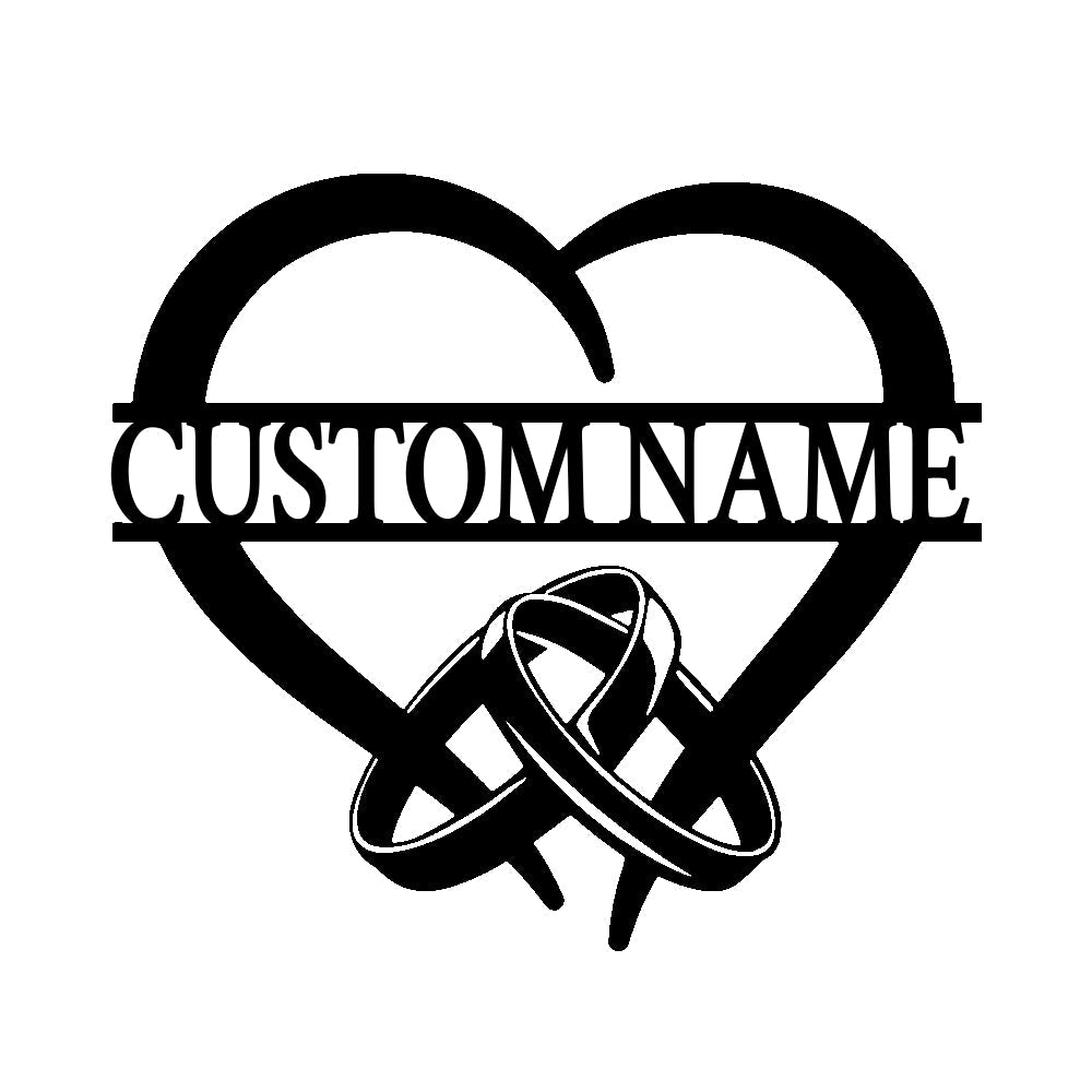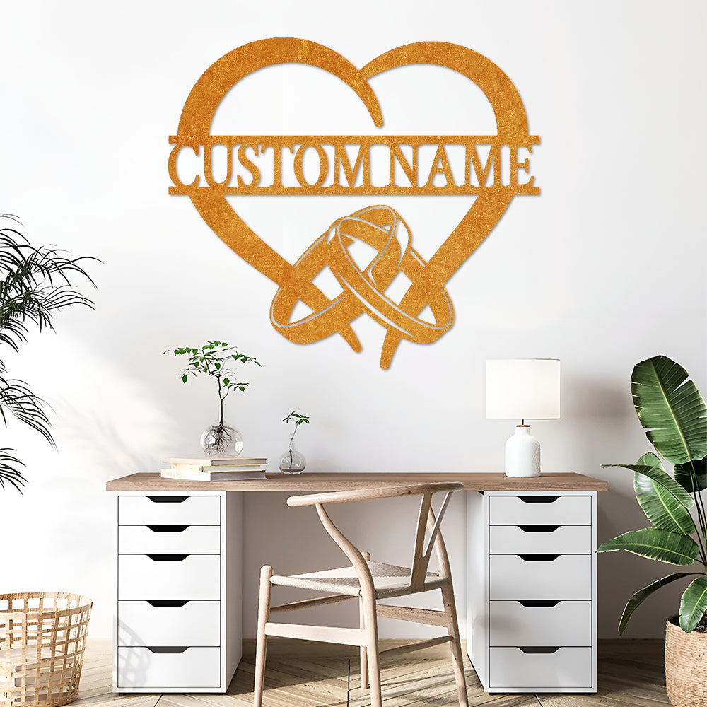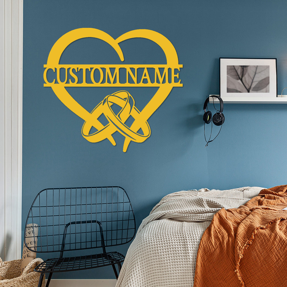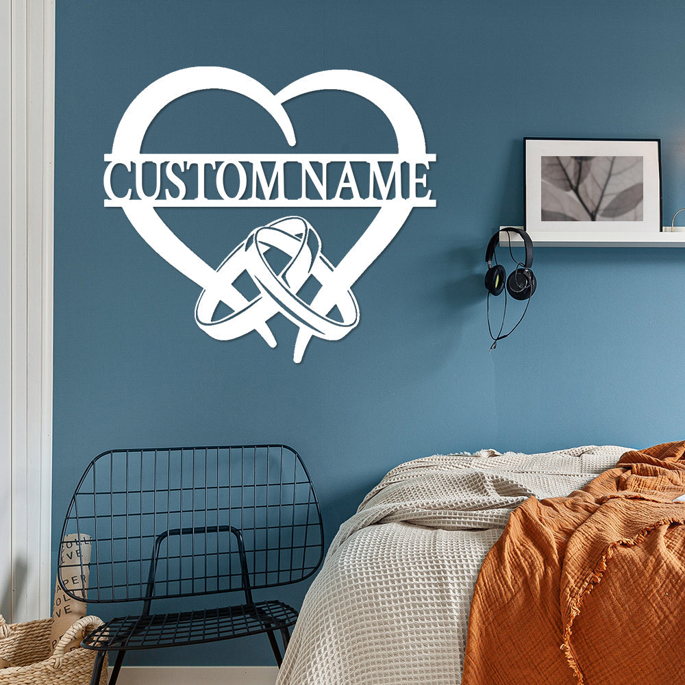 Ringe und Herz Wanddekorationen aus Metall mit individuellen Namen