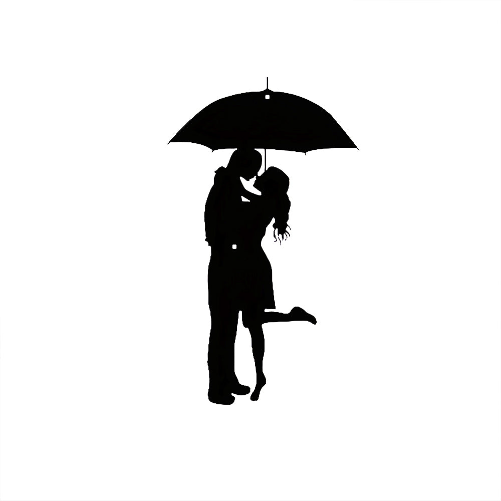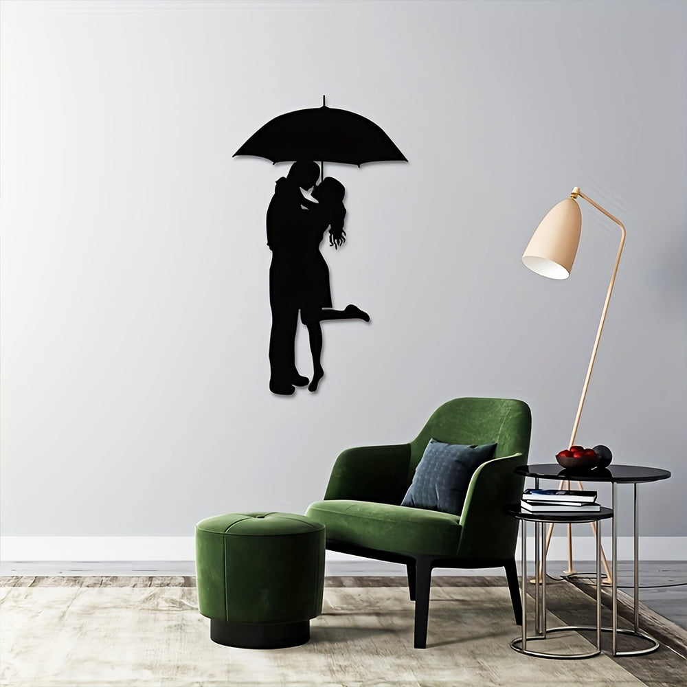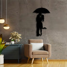 Schwarzes Paar Küssen Unter Regenschirm Metall Wanddekoration