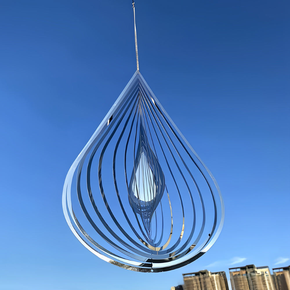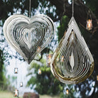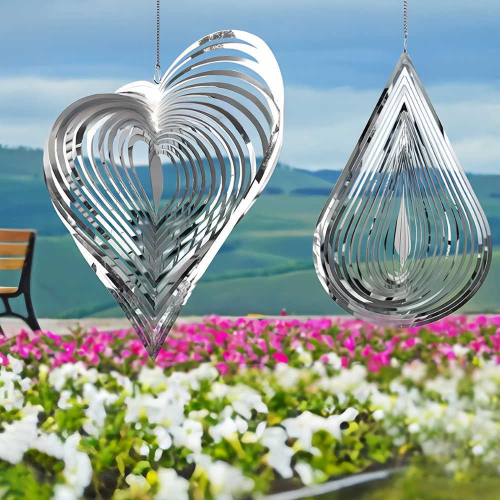 2 Stück Tropfenförmig und Herzförmig 3D Edelstahl Garten Windspiele