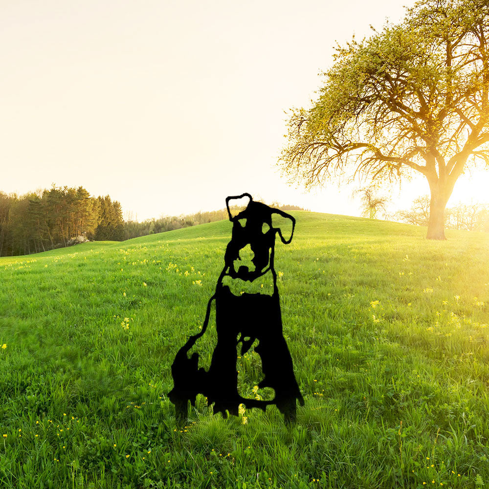 Hochwertige Metallkunst mit Tiersilhouette, die Ihrem Garten ganz einfach eine fröhliche Atmosphäre verleiht.