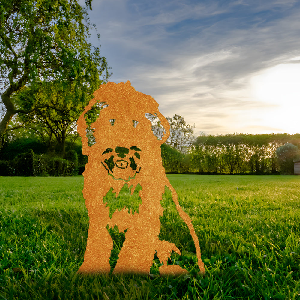 Hochwertige Metallkunst mit Tiersilhouette, die Ihrem Garten ganz einfach eine fröhliche Atmosphäre verleiht.