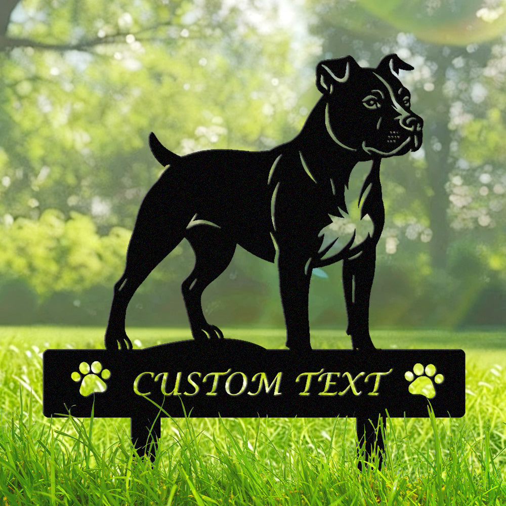 Amerikanischer Staffordshire Terrier Individuell gestalteter Hunde Silhouette Metall Gartenpfahl