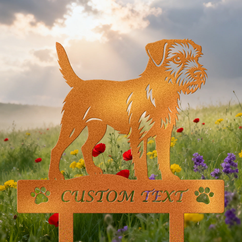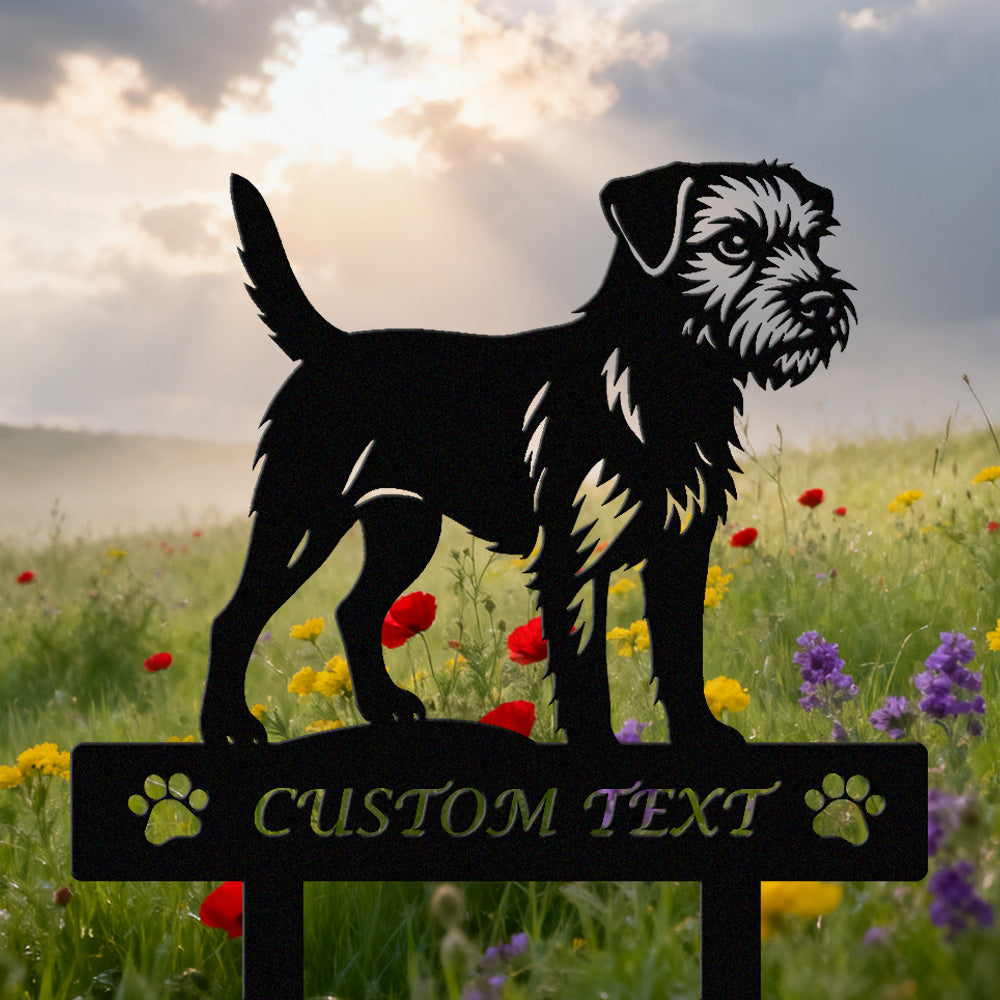 Border Terrier Individuell gestalteter Hunde Silhouette Metall Gartenpfahl