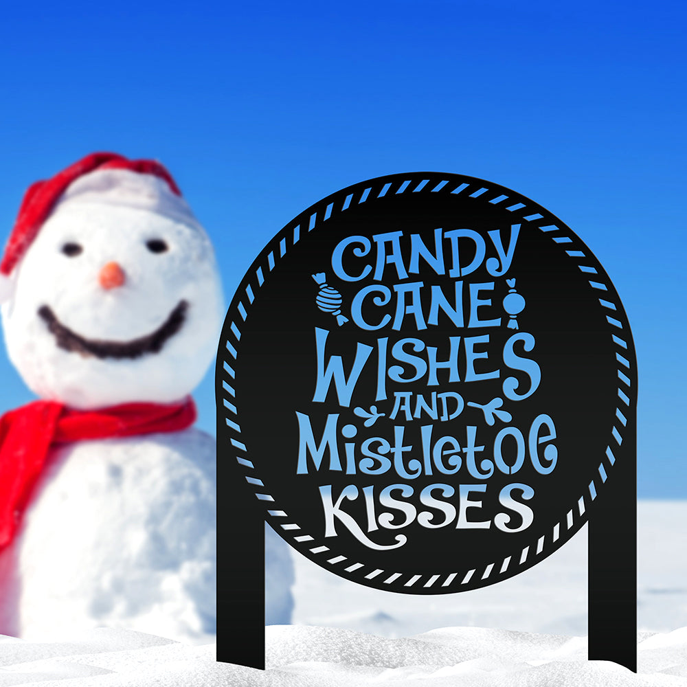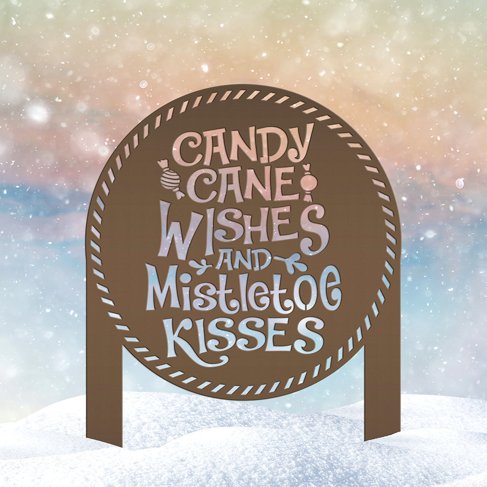 Candy Cane Wishes und Mistletoe Kisses Weihnachten Metallschild Hofdekoration im Freien