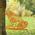 Hochwertige Metallkunst mit Tiersilhouette, die Ihrem Garten ganz einfach eine fröhliche Atmosphäre verleiht.