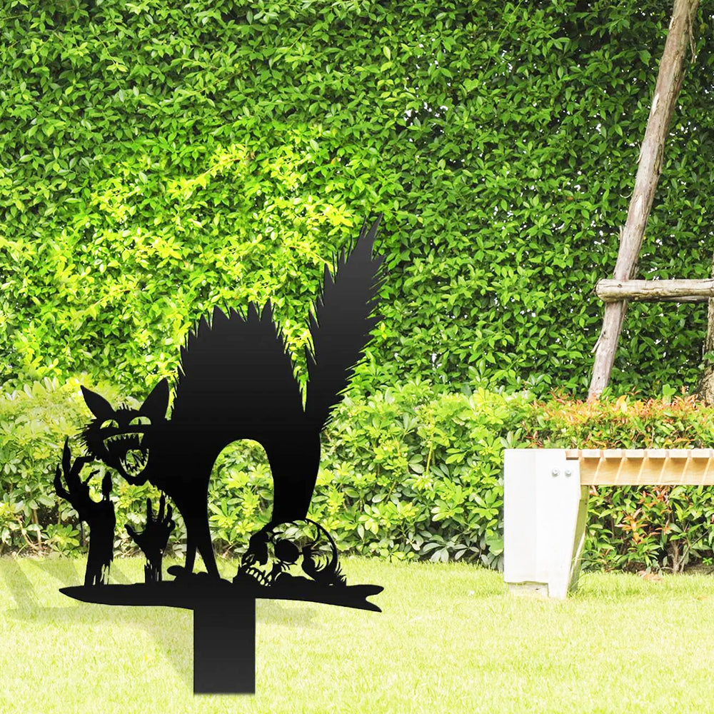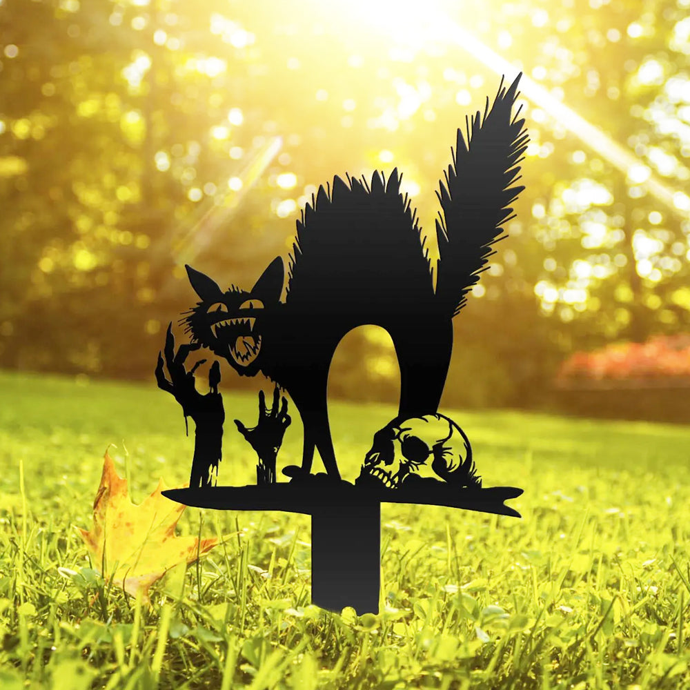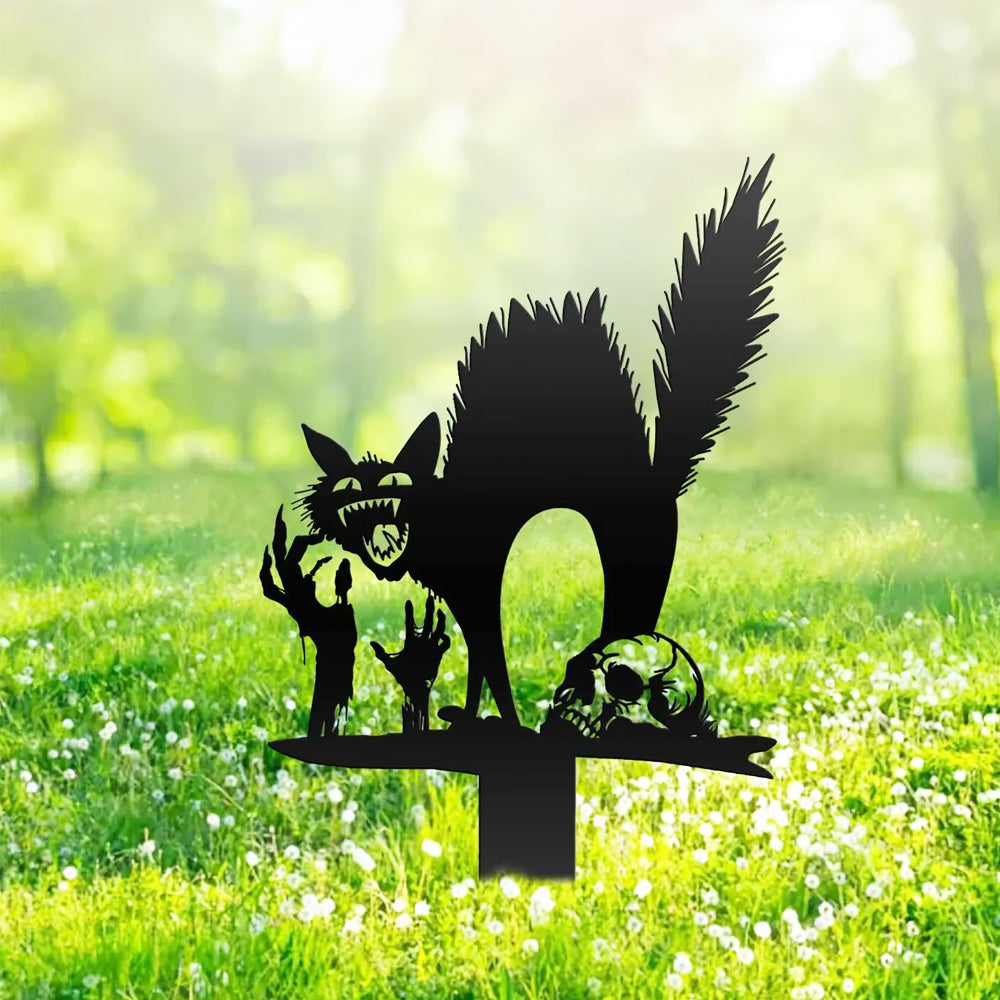 Halloween Erschreckte Katze Metall Hofpfahl