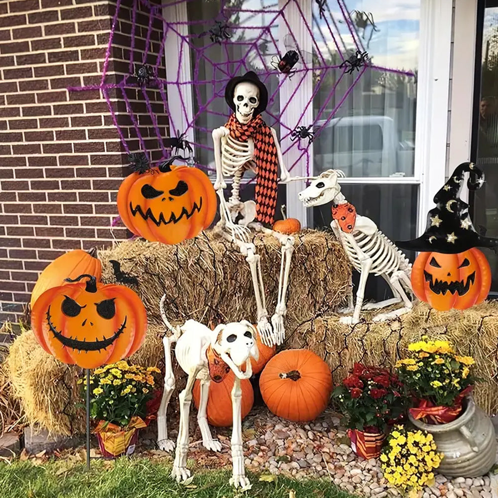 Halloween Outdoor Dekor Kürbis Geisterhaftes Gesicht Metall Hofpfahl
