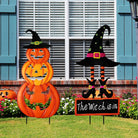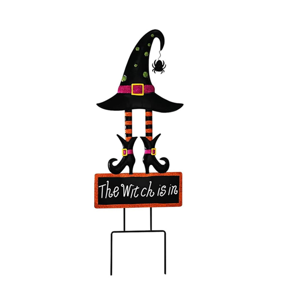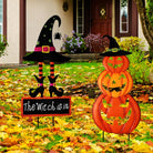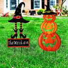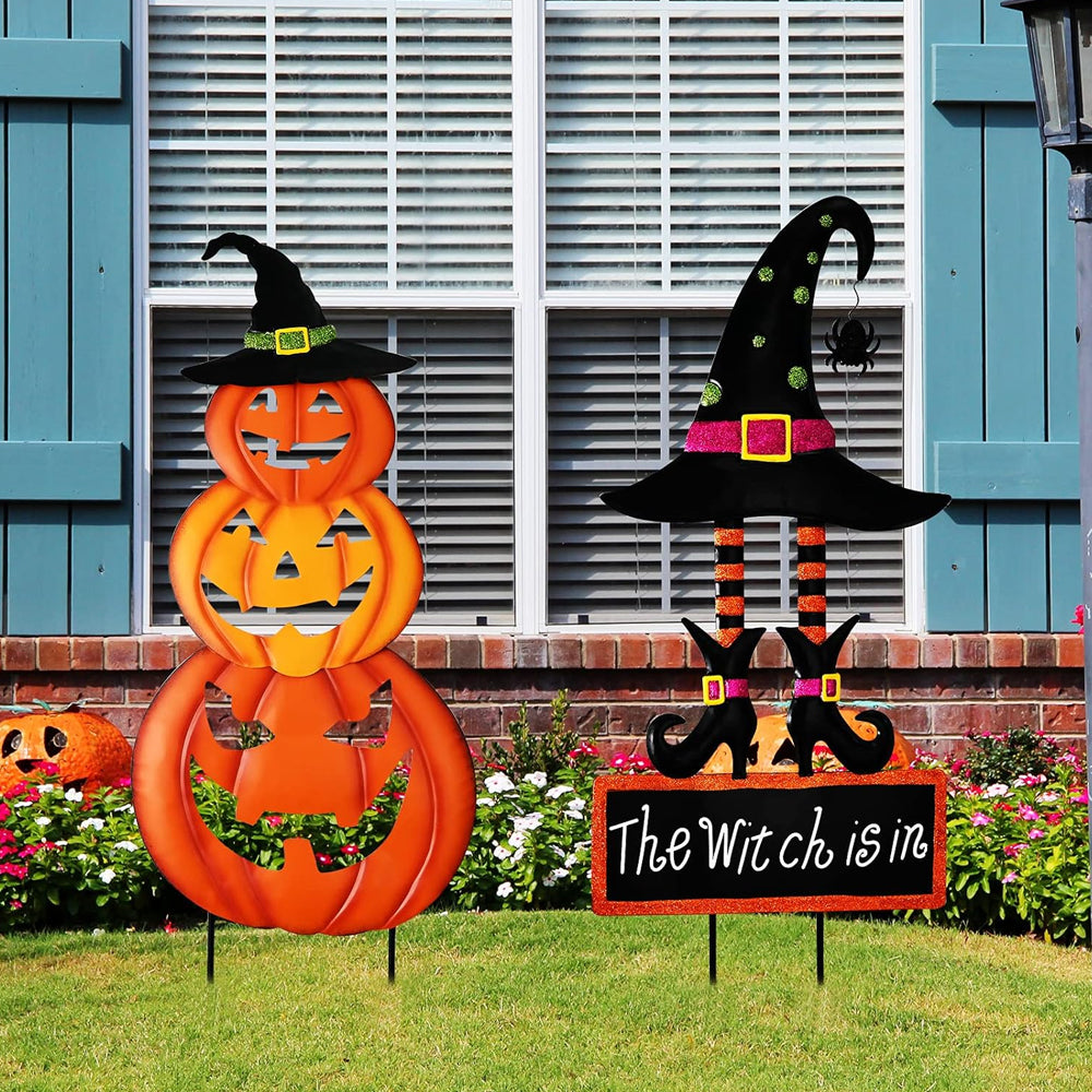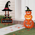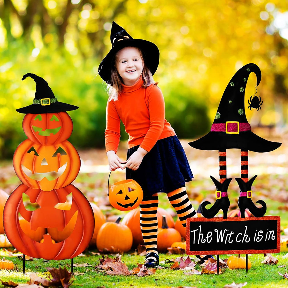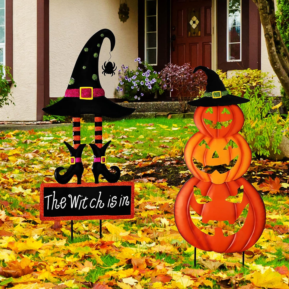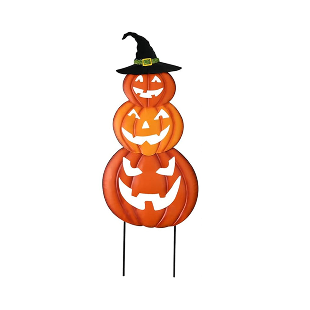 Halloween Outdoor Dekor Kürbis Gesicht und Hexenhut Metall Hofpfahl