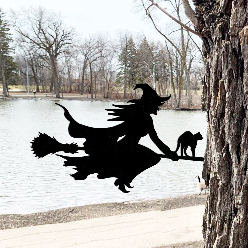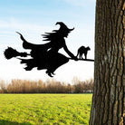 Hexe auf Besen Halloween Metall Hofpfahl