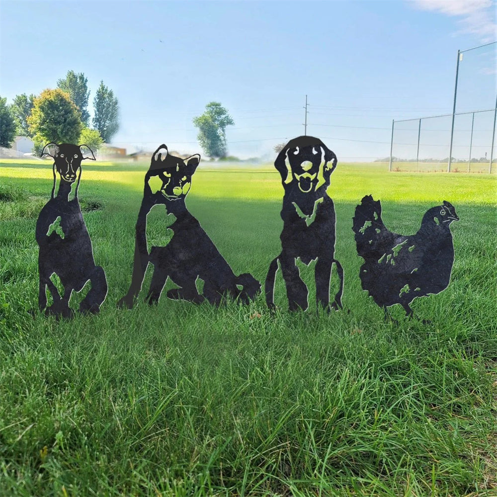 Hochwertige Metallkunst mit Tiersilhouette, die Ihrem Garten ganz einfach eine fröhliche Atmosphäre verleiht.