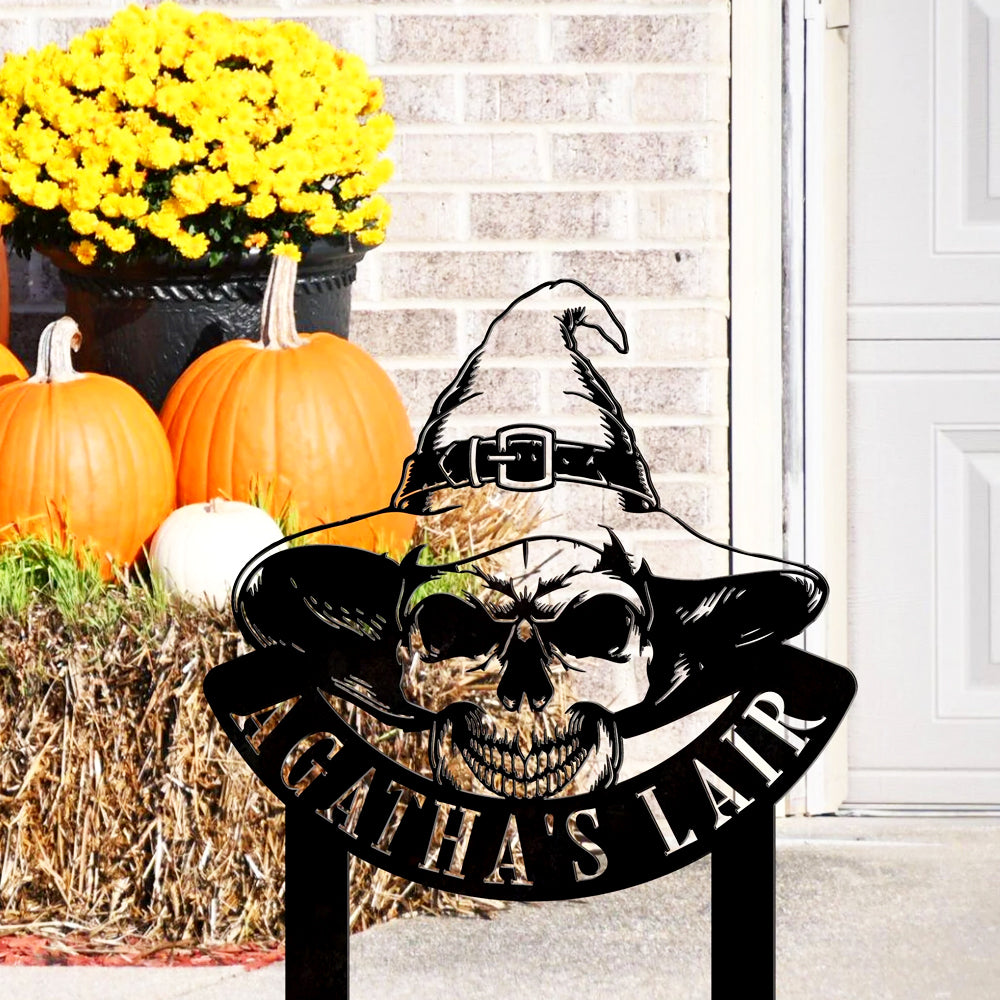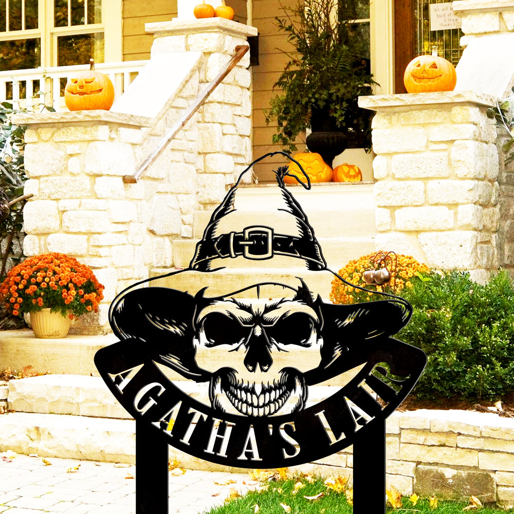 Individuell Gruselige Hexen Skelett Hut Halloween Metall Hofpfahl