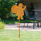 Hochwertige Metallkunst mit Tiersilhouette, die Ihrem Garten ganz einfach eine fröhliche Atmosphäre verleiht.