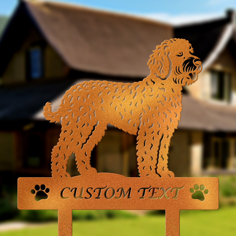 Lagotto Romagnolo Individuell gestalteter Hunde Silhouette Metall Gartenpfahl