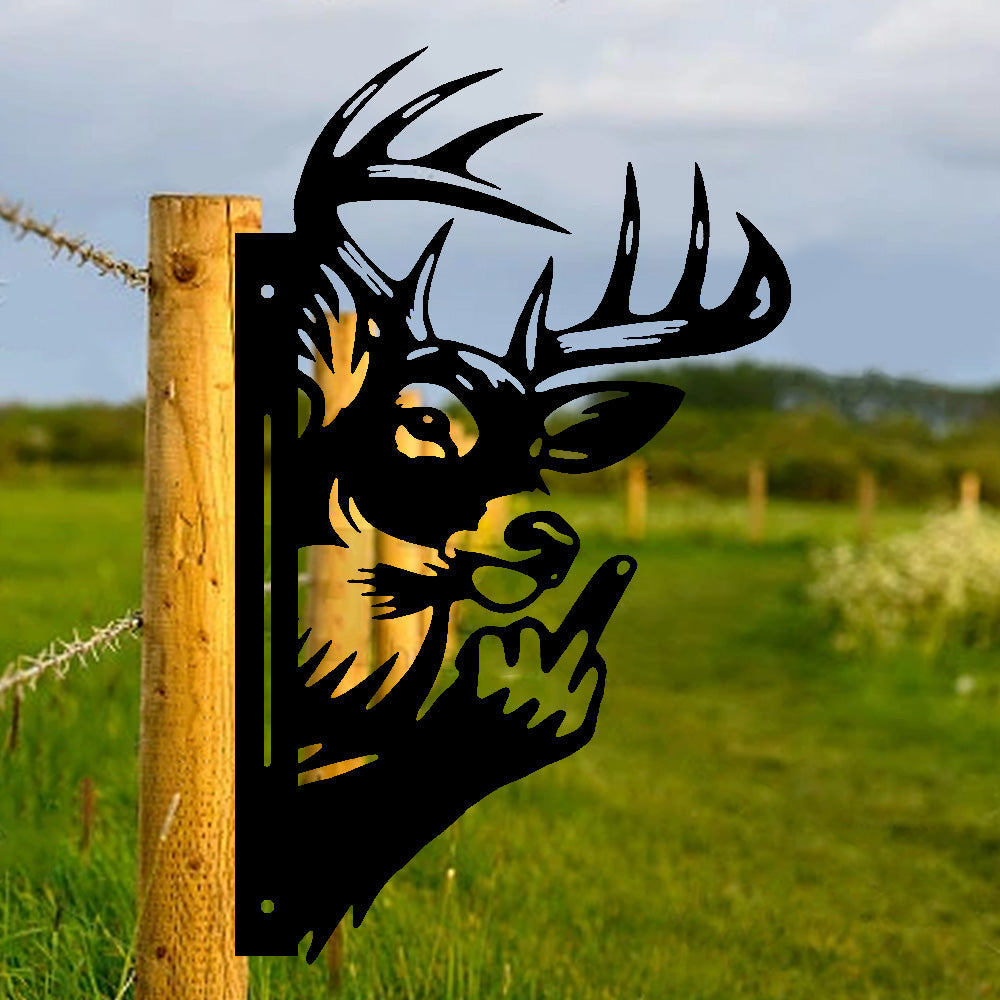 Lustiger Elch Metallschild mit Stinkefinger – Guckendes Tier Gartendekoration