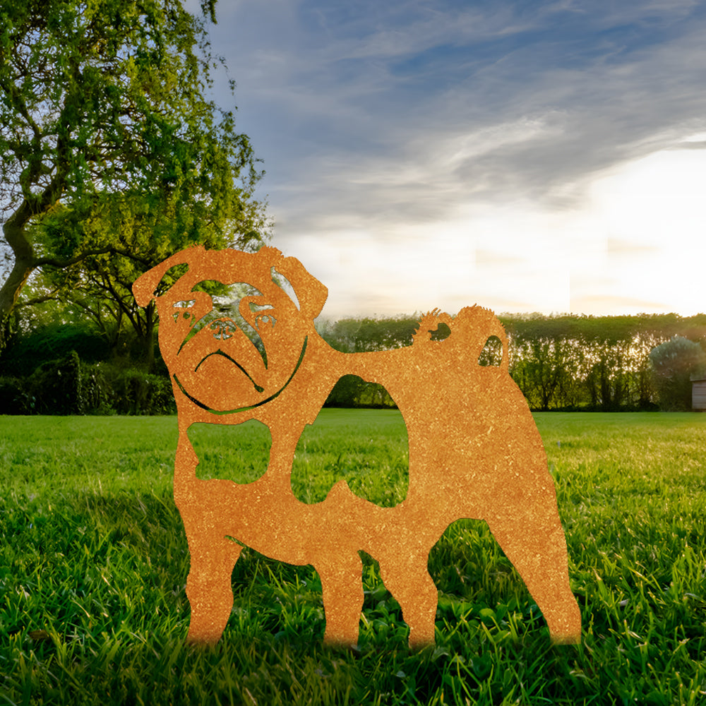 Hochwertige Metallkunst mit Tiersilhouette, die Ihrem Garten ganz einfach eine fröhliche Atmosphäre verleiht.