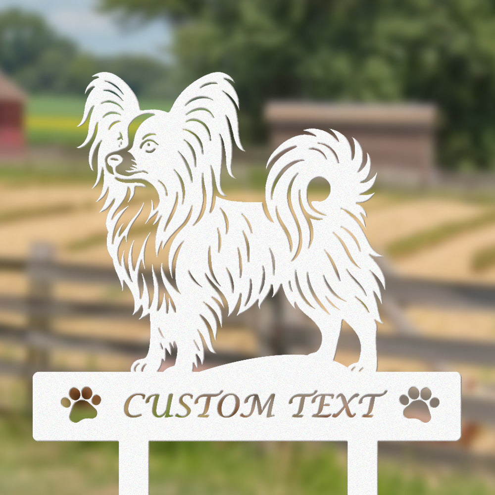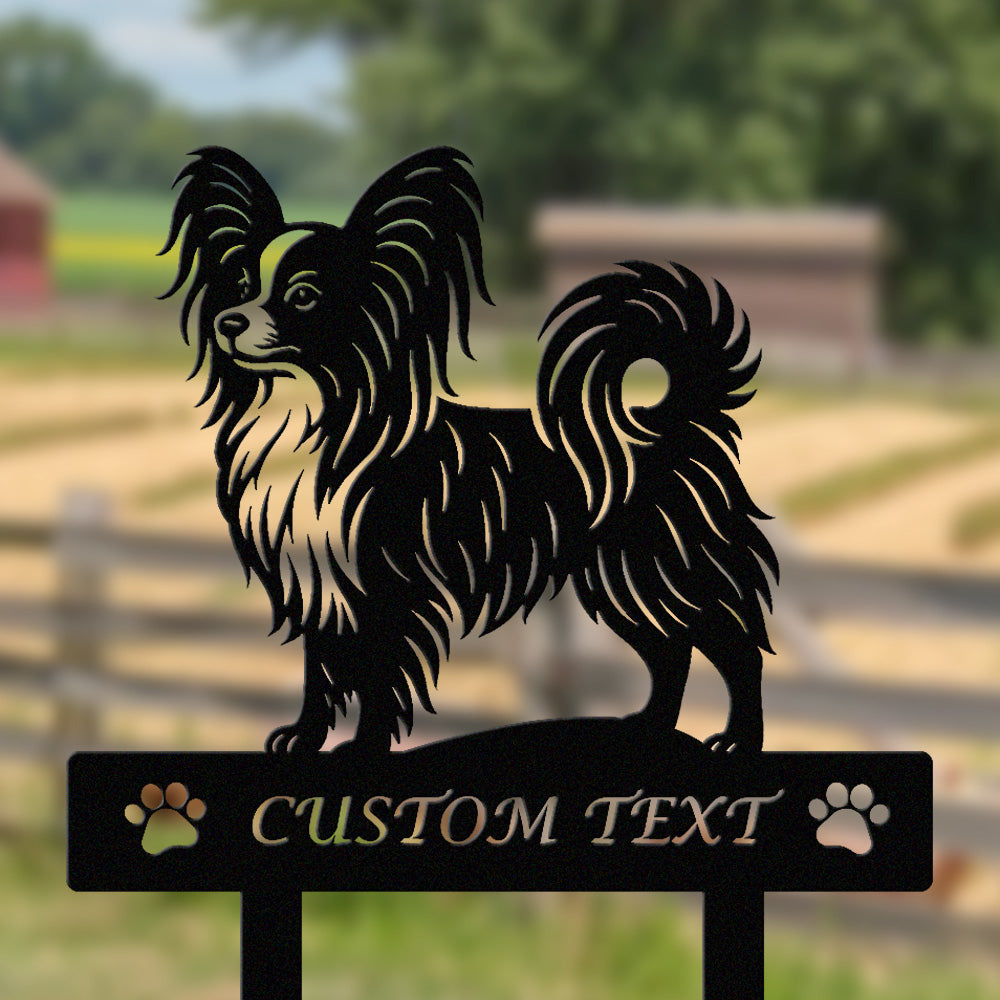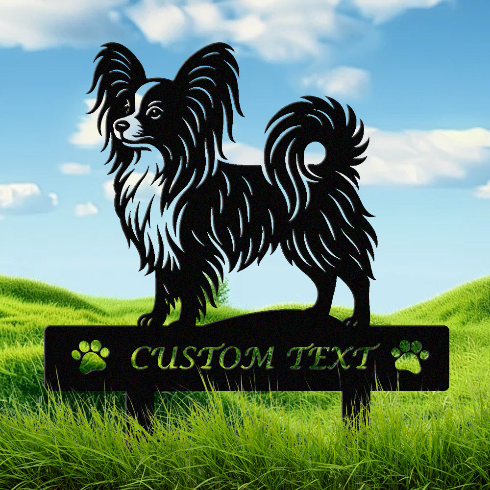 Papillon Individuell gestalteter Hunde Silhouette Metall Gartenpfahl