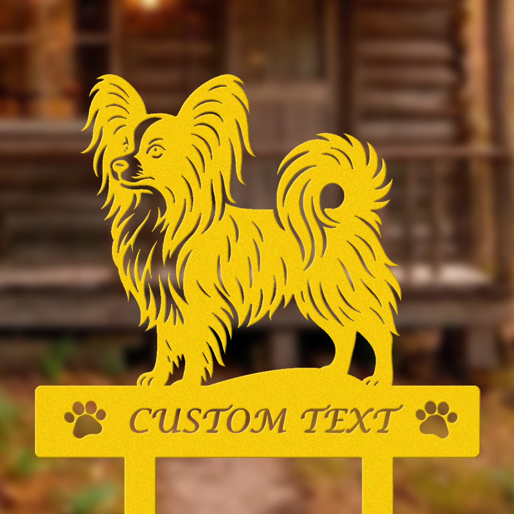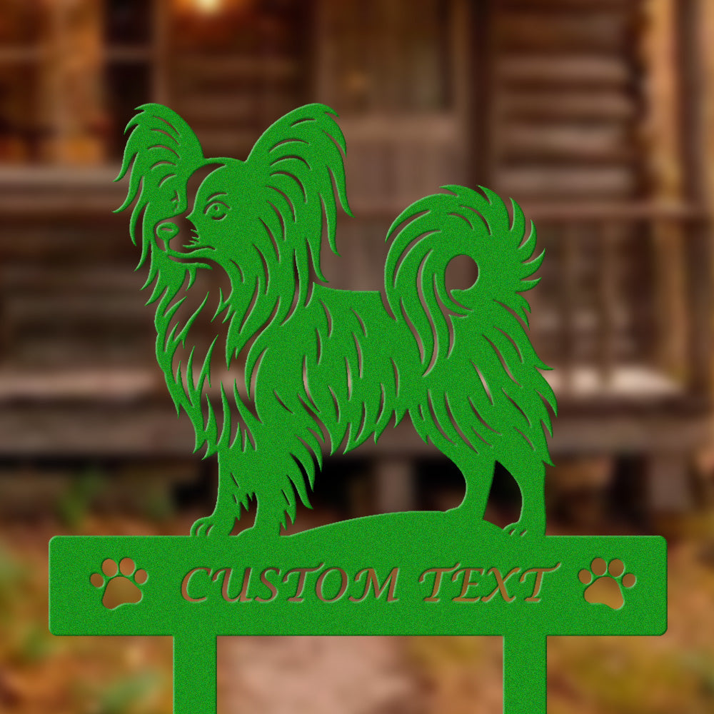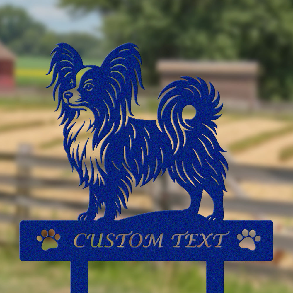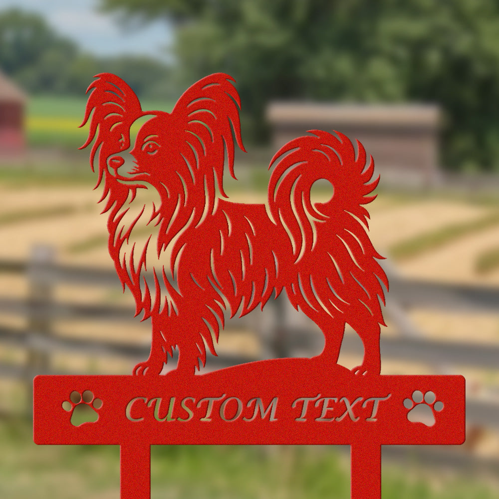 Papillon Individuell gestalteter Hunde Silhouette Metall Gartenpfahl