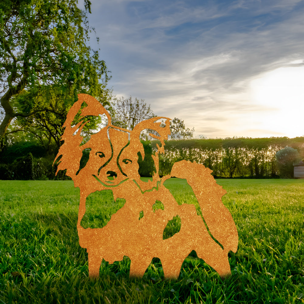 Hochwertige Metallkunst mit Tiersilhouette, die Ihrem Garten ganz einfach eine fröhliche Atmosphäre verleiht.
