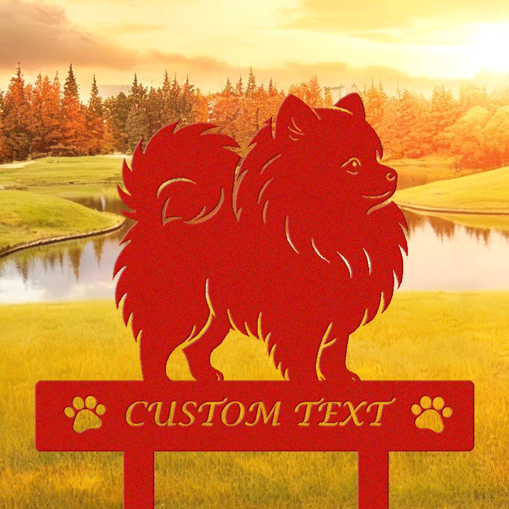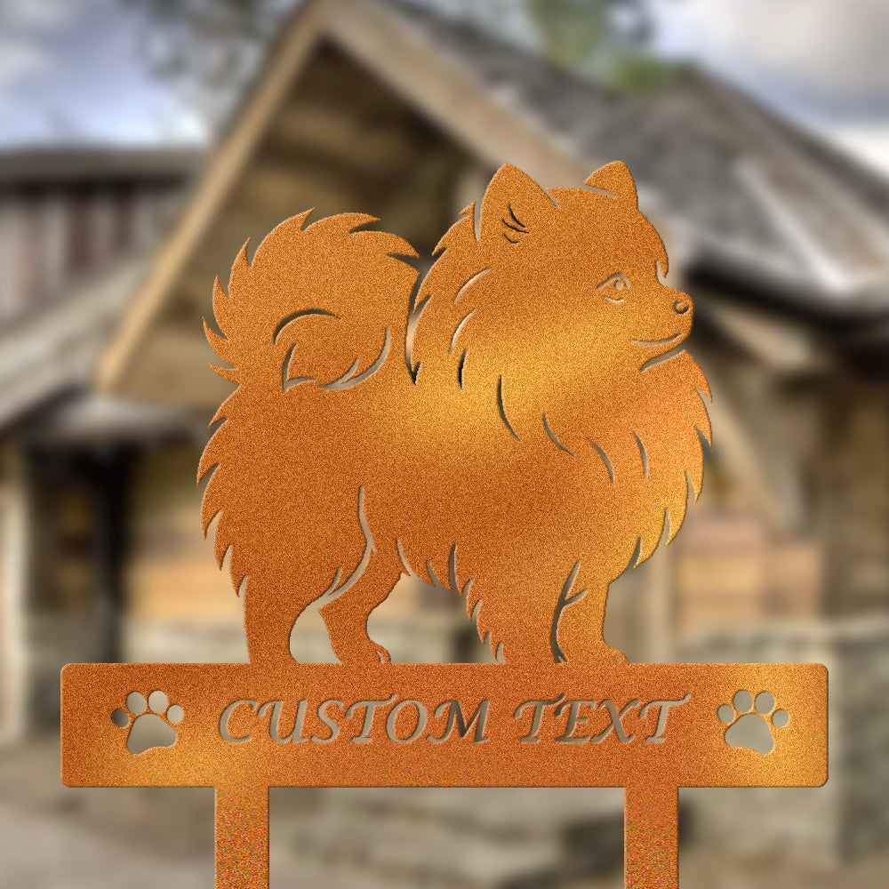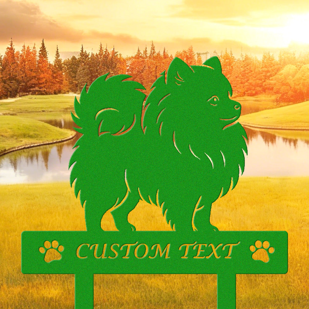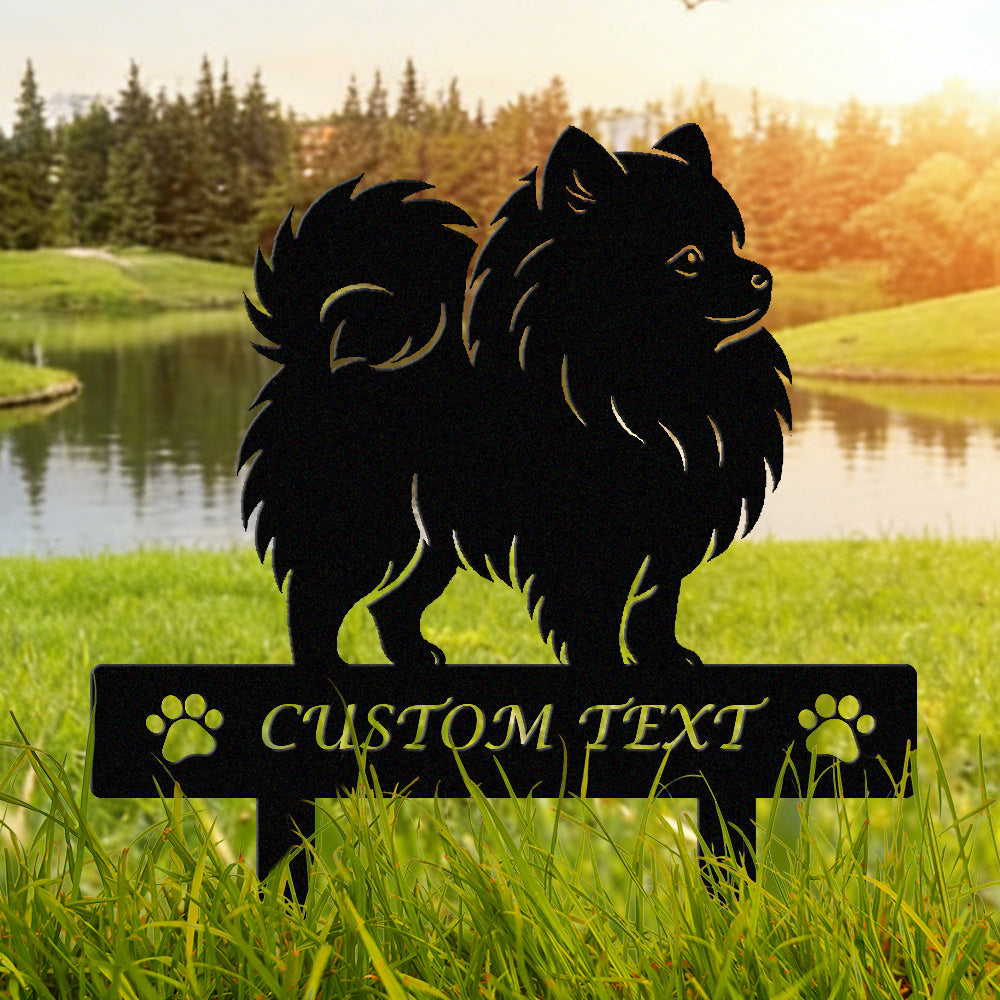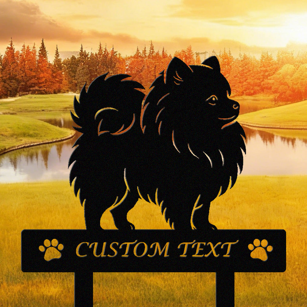 Pomeranian Individuell gestalteter Hunde Silhouette Metall Gartenpfahl