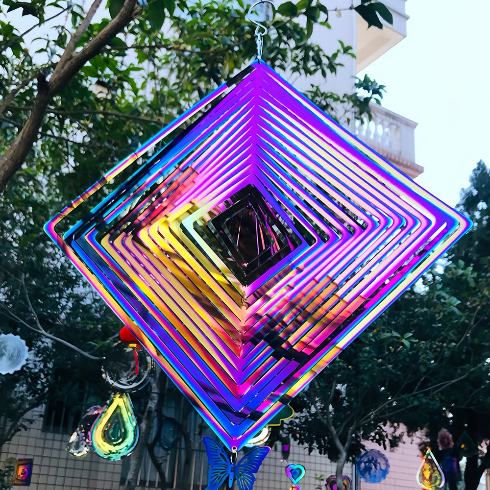 Quadratisch 3D Edelstahl Garten Windspiele