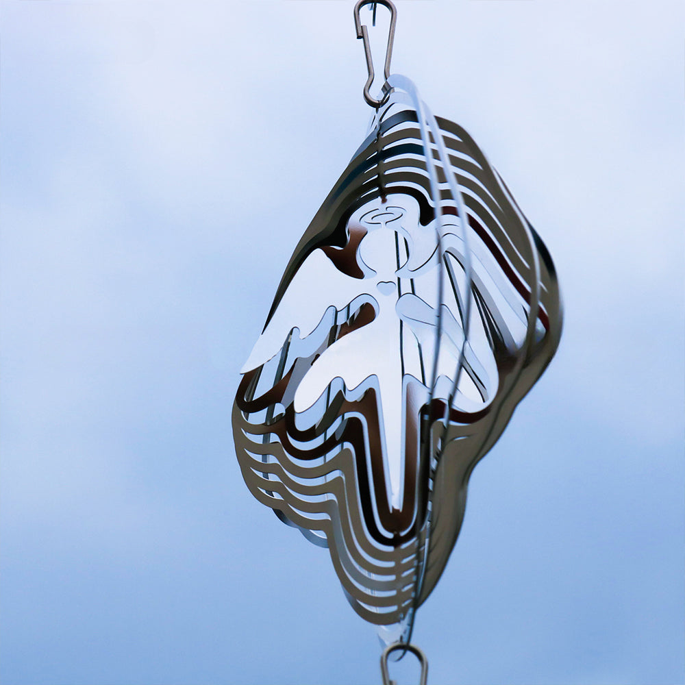 Rotierender Engel Herzform 3D Edelstahl Garten Windspiele