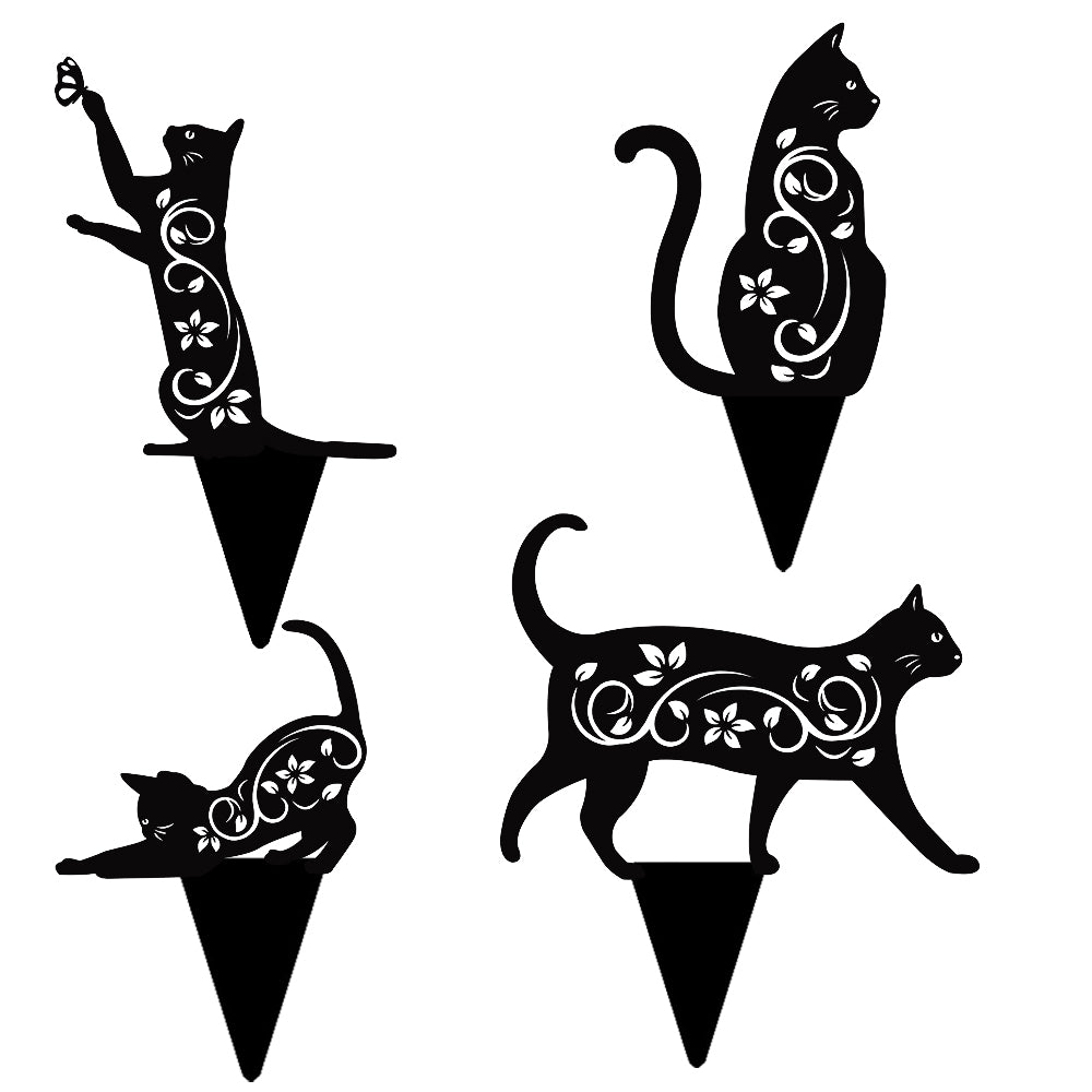 Schwarze Katze Tiere 4 Stück Outdoor Metall Gartenmarker