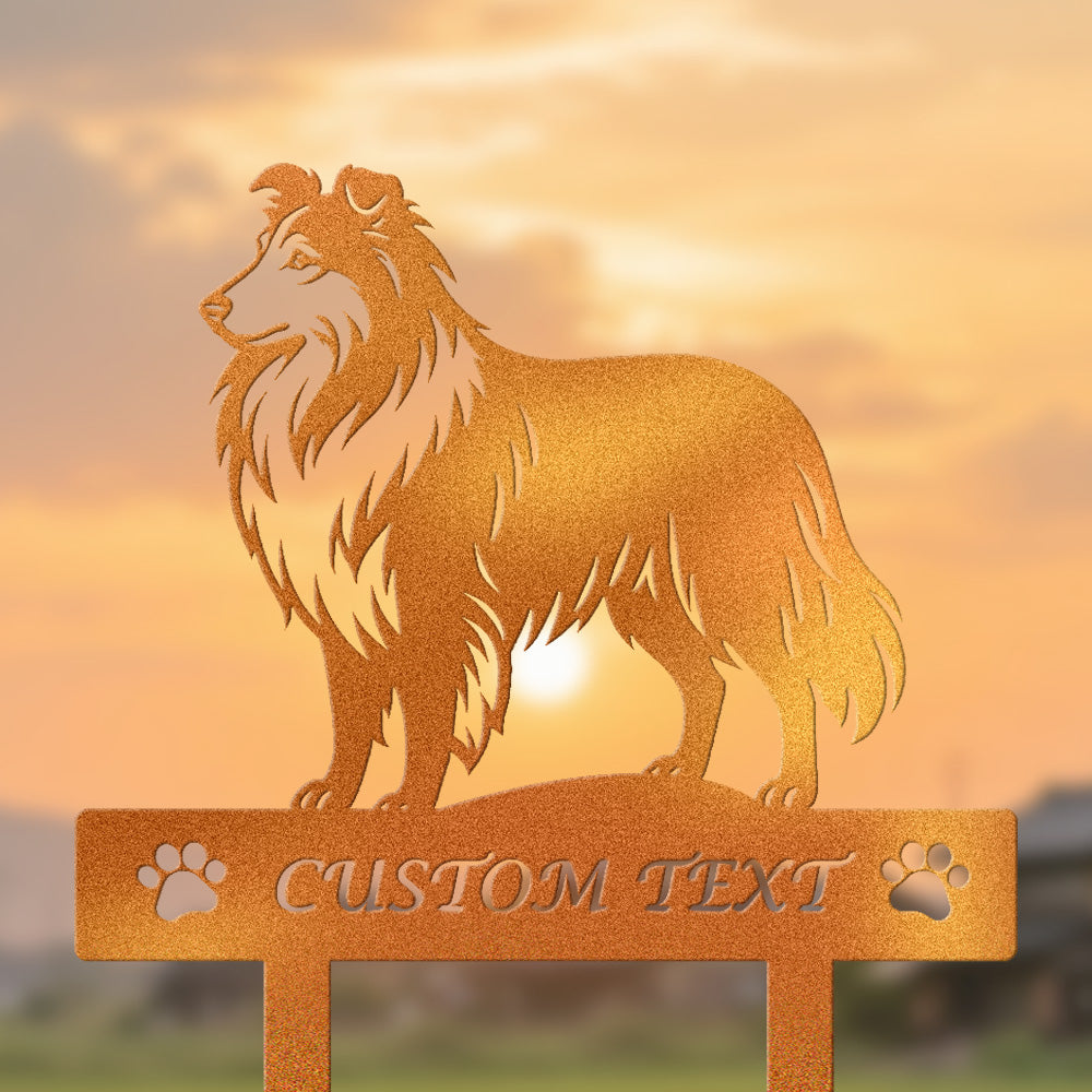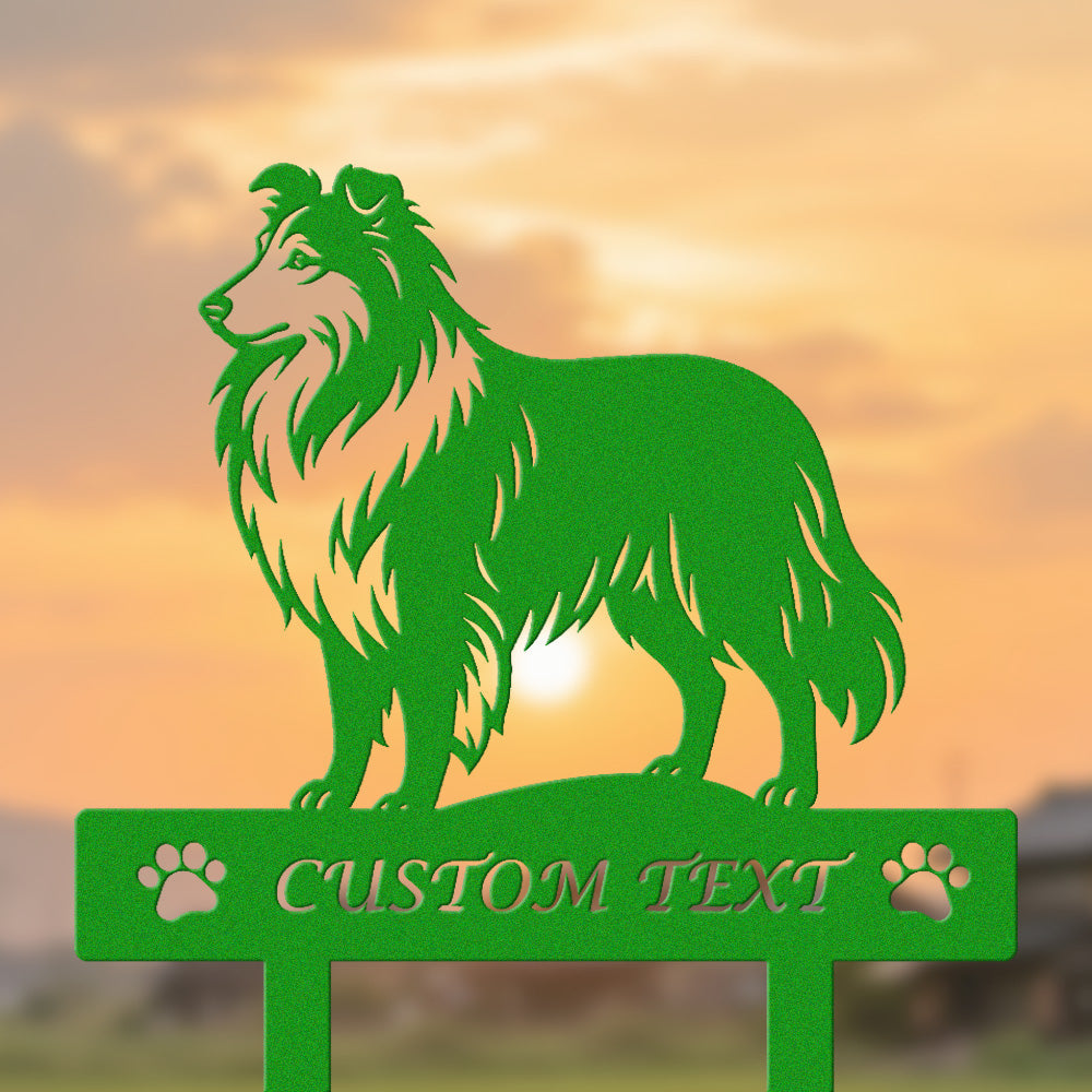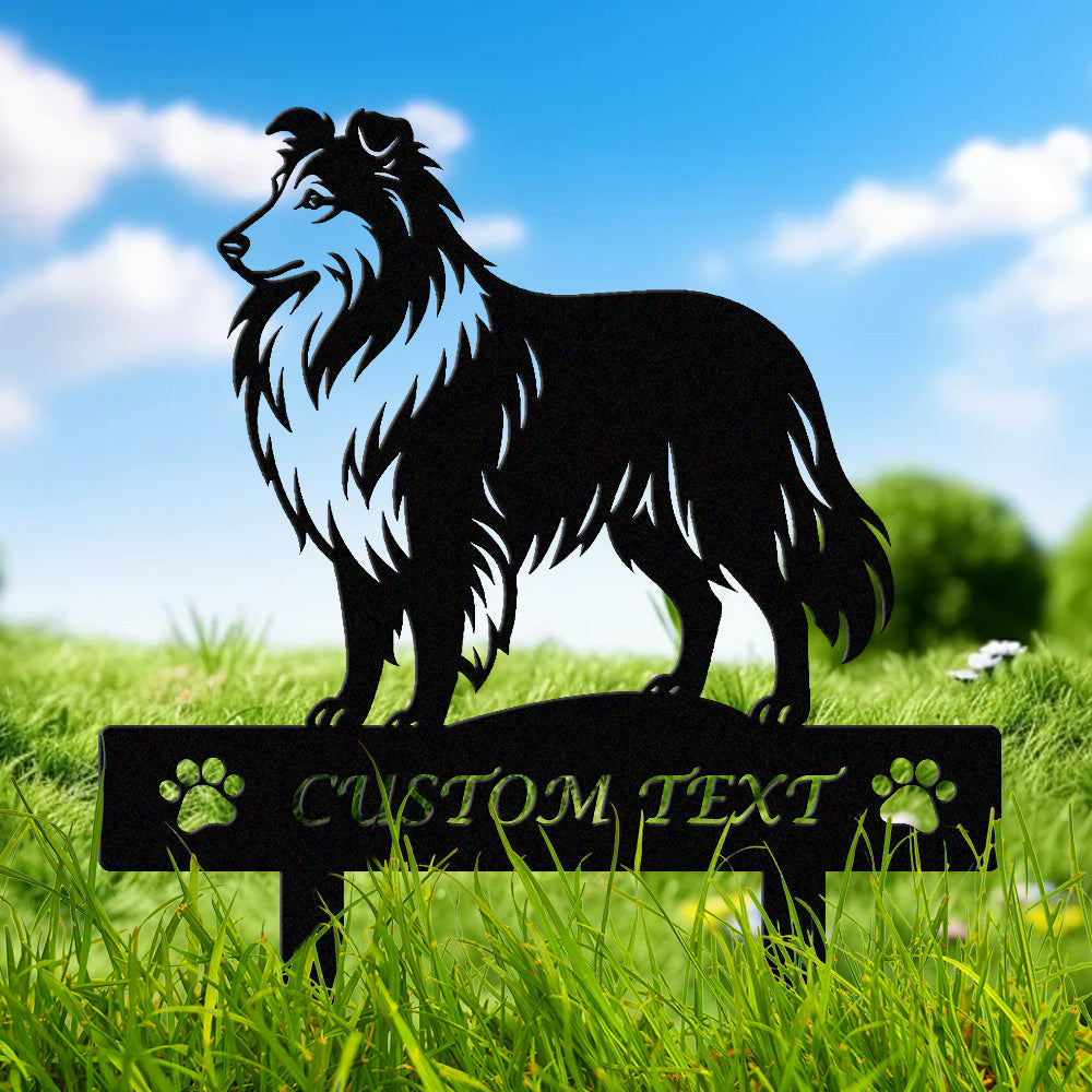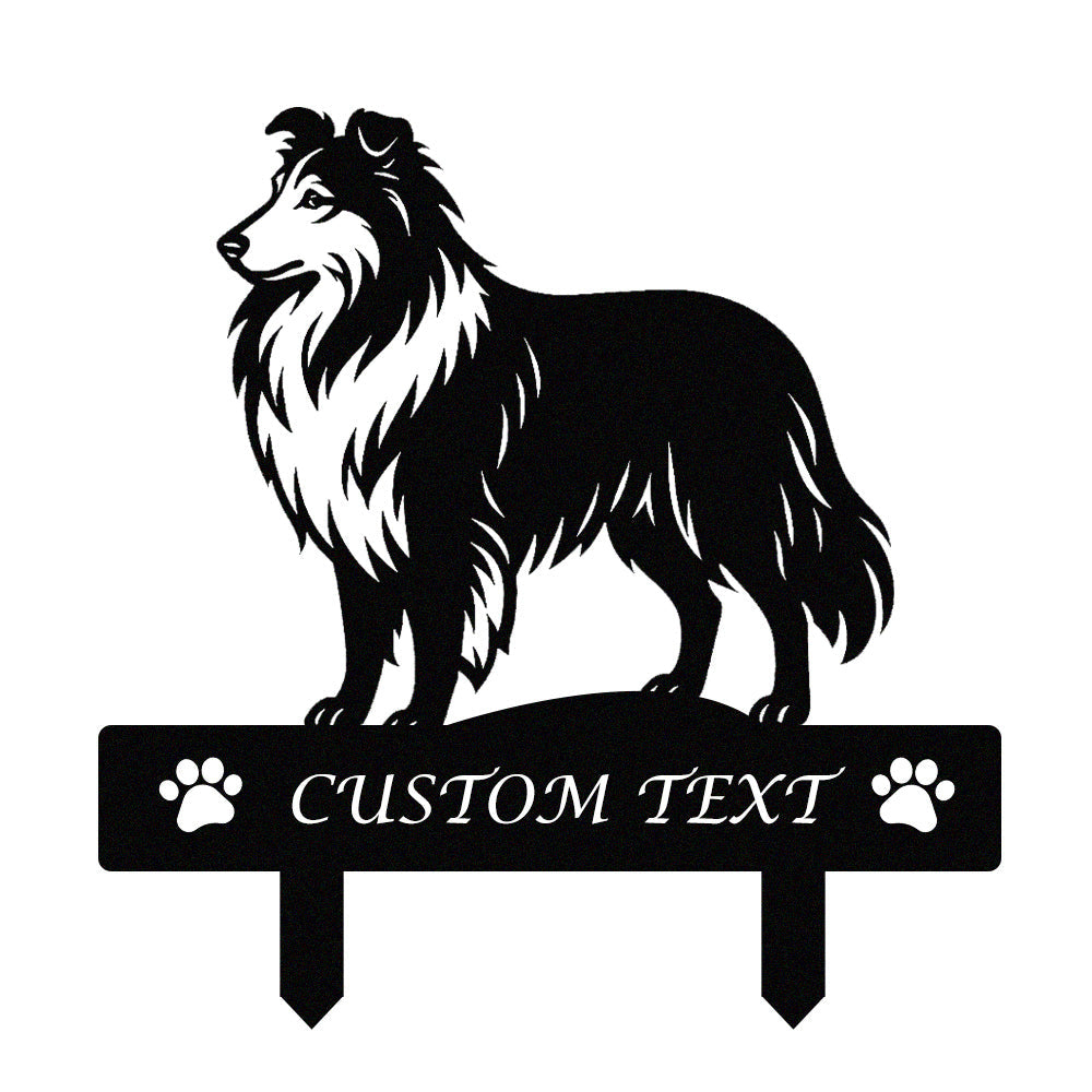Shetland-Schäferhund Individuell gestalteter Hunde Silhouette Metall Gartenpfahl