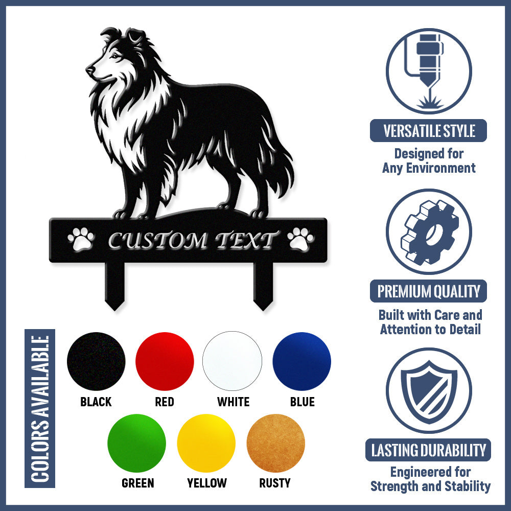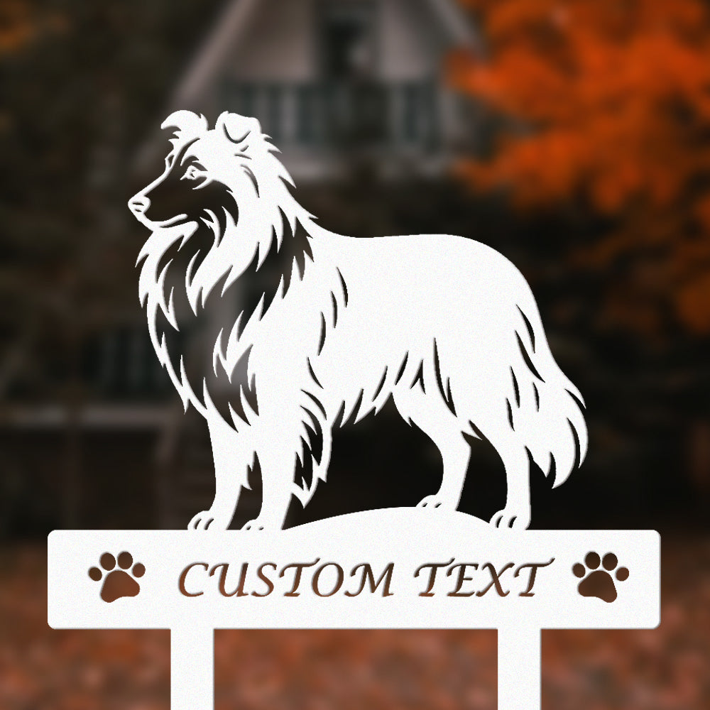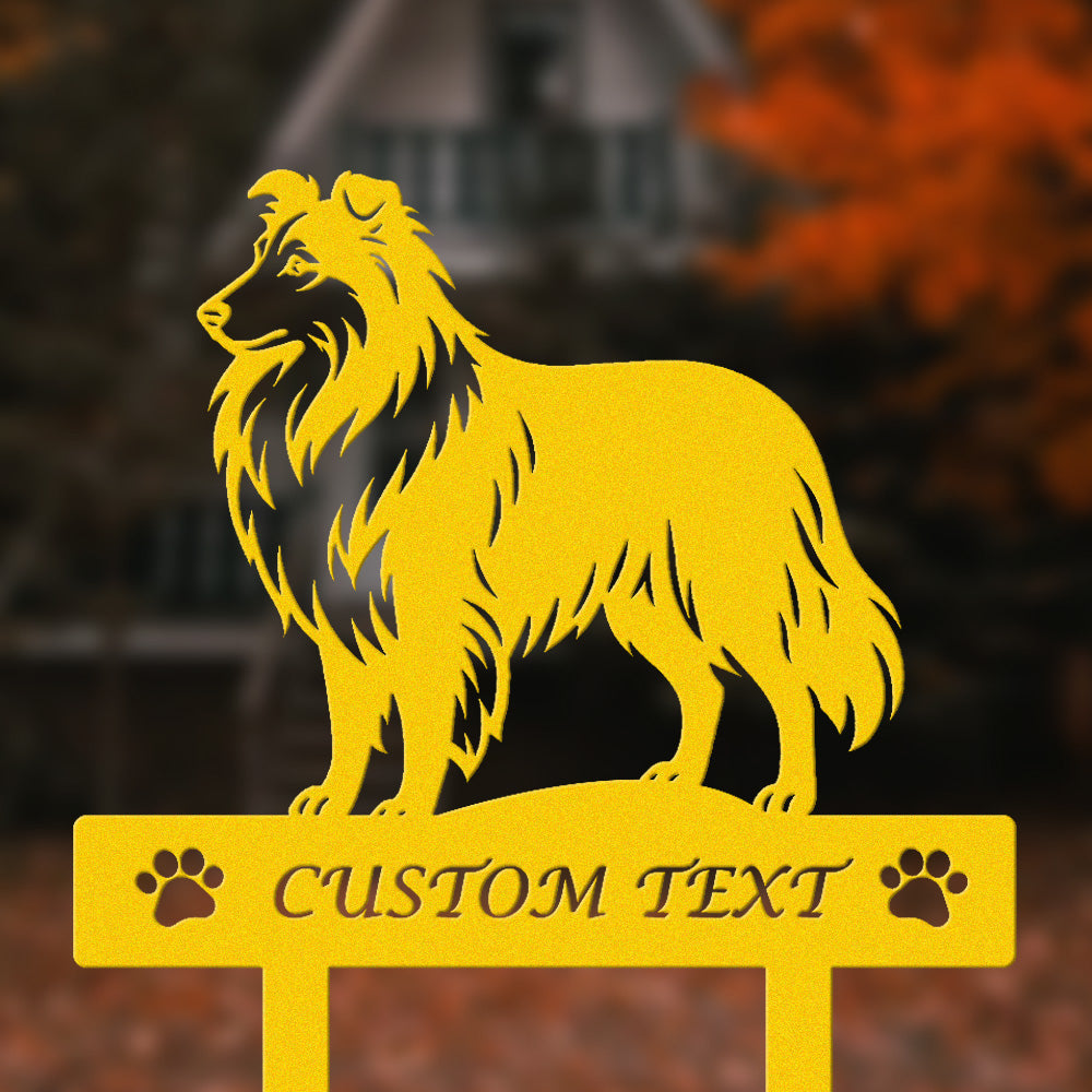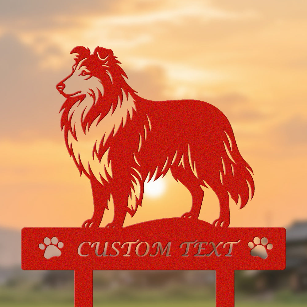 Shetland-Schäferhund Individuell gestalteter Hunde Silhouette Metall Gartenpfahl