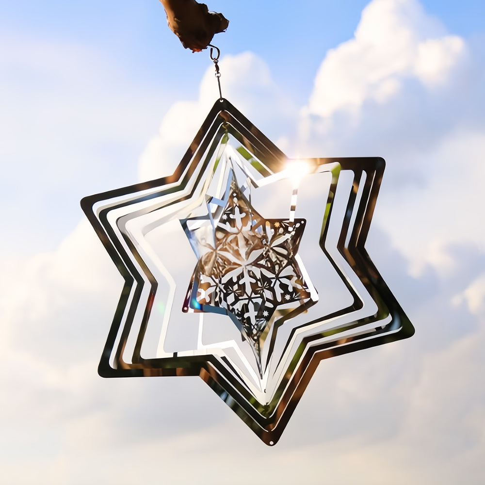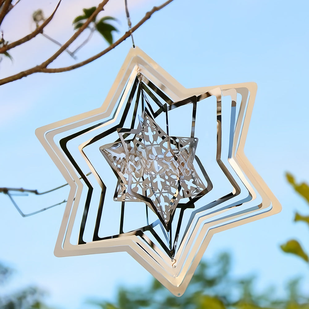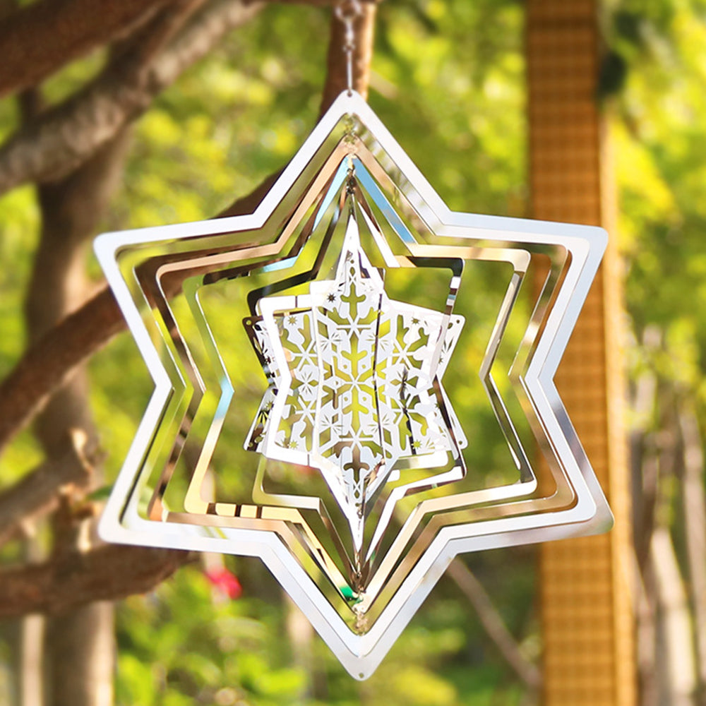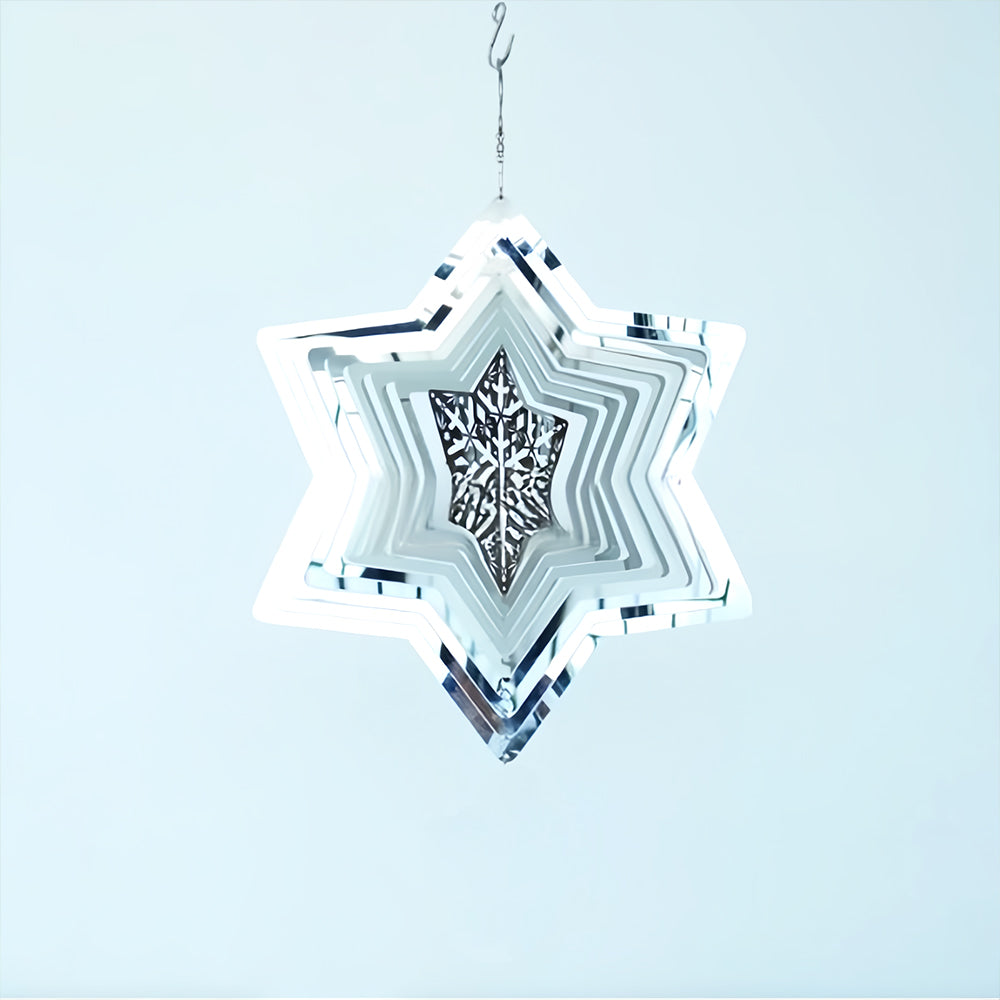 Silberne Schneeflocke 3D Edelstahl Garten Windspiele