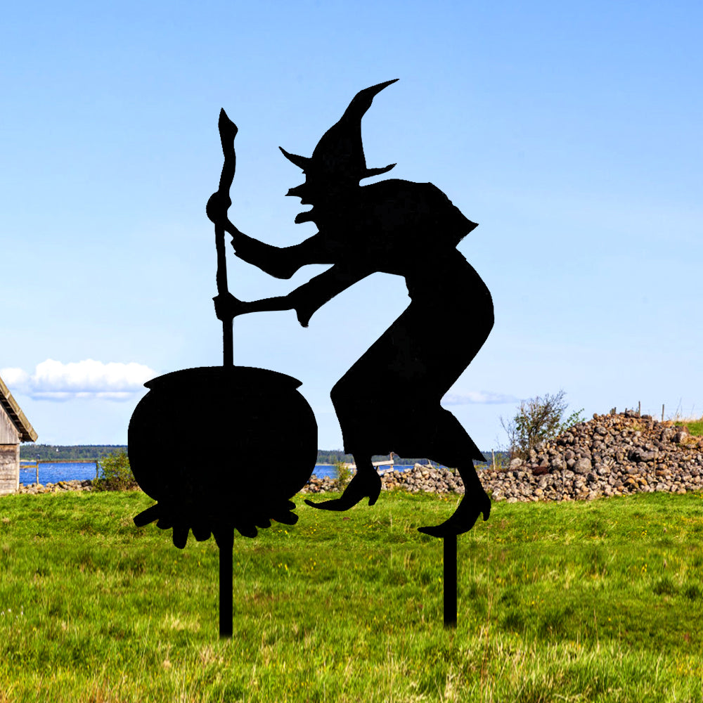 Vintage Hexe Rühren Kessel Halloween Metall Hofpfahl