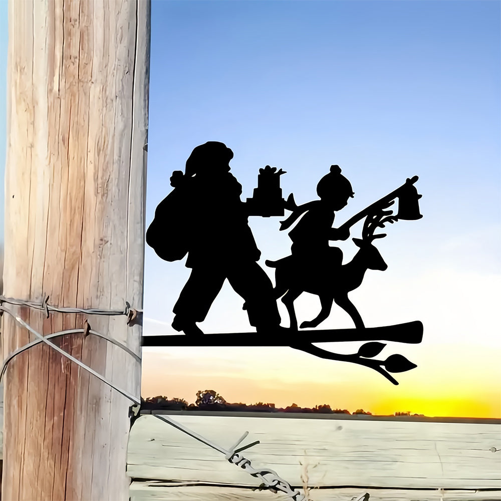 Weihnachtsmann und Mädchen Weihnachten Dekorationen Outdoor Metall Garten Kunst