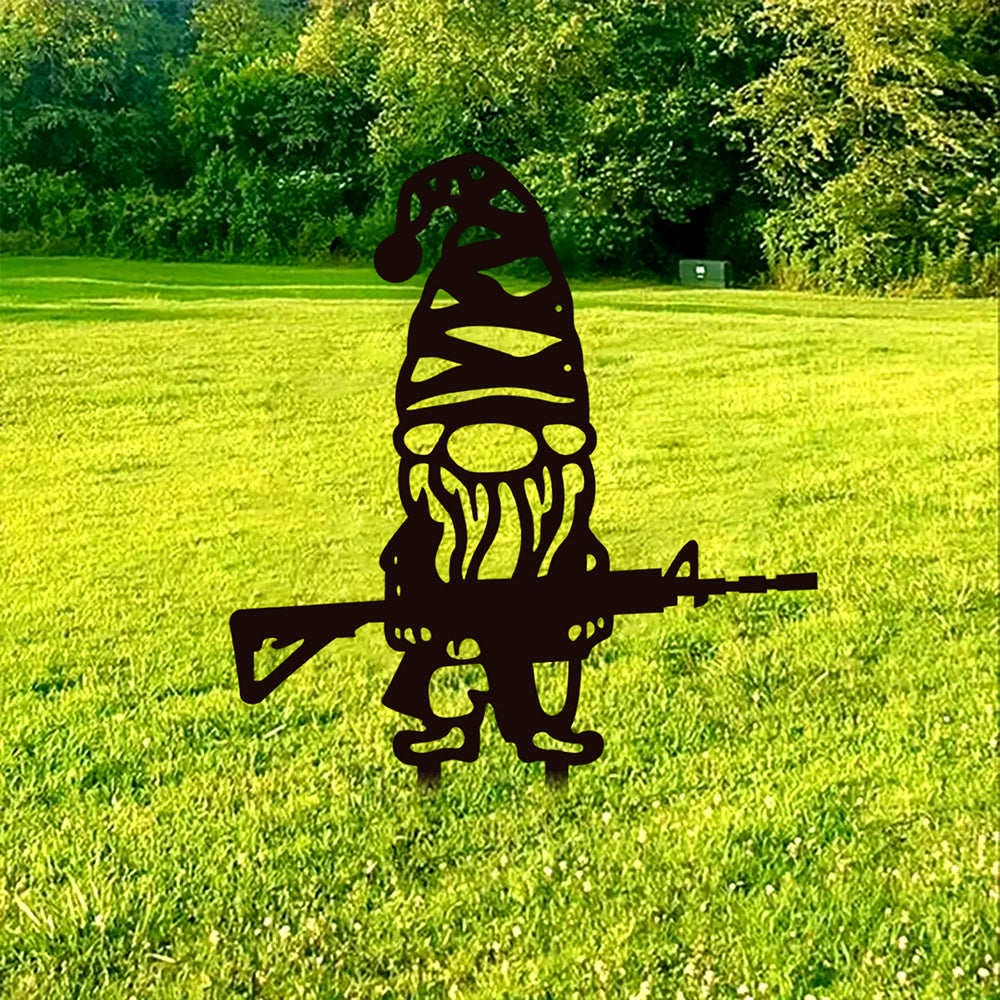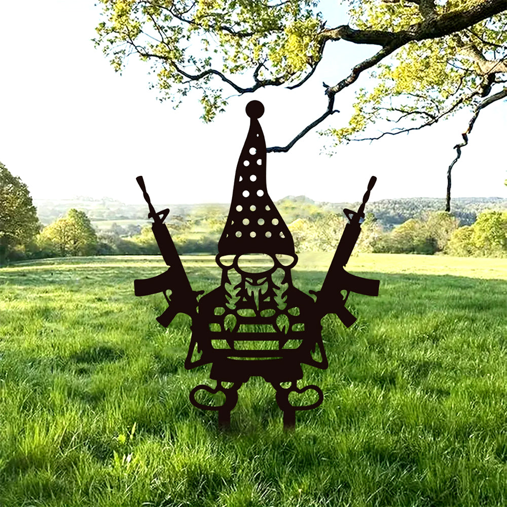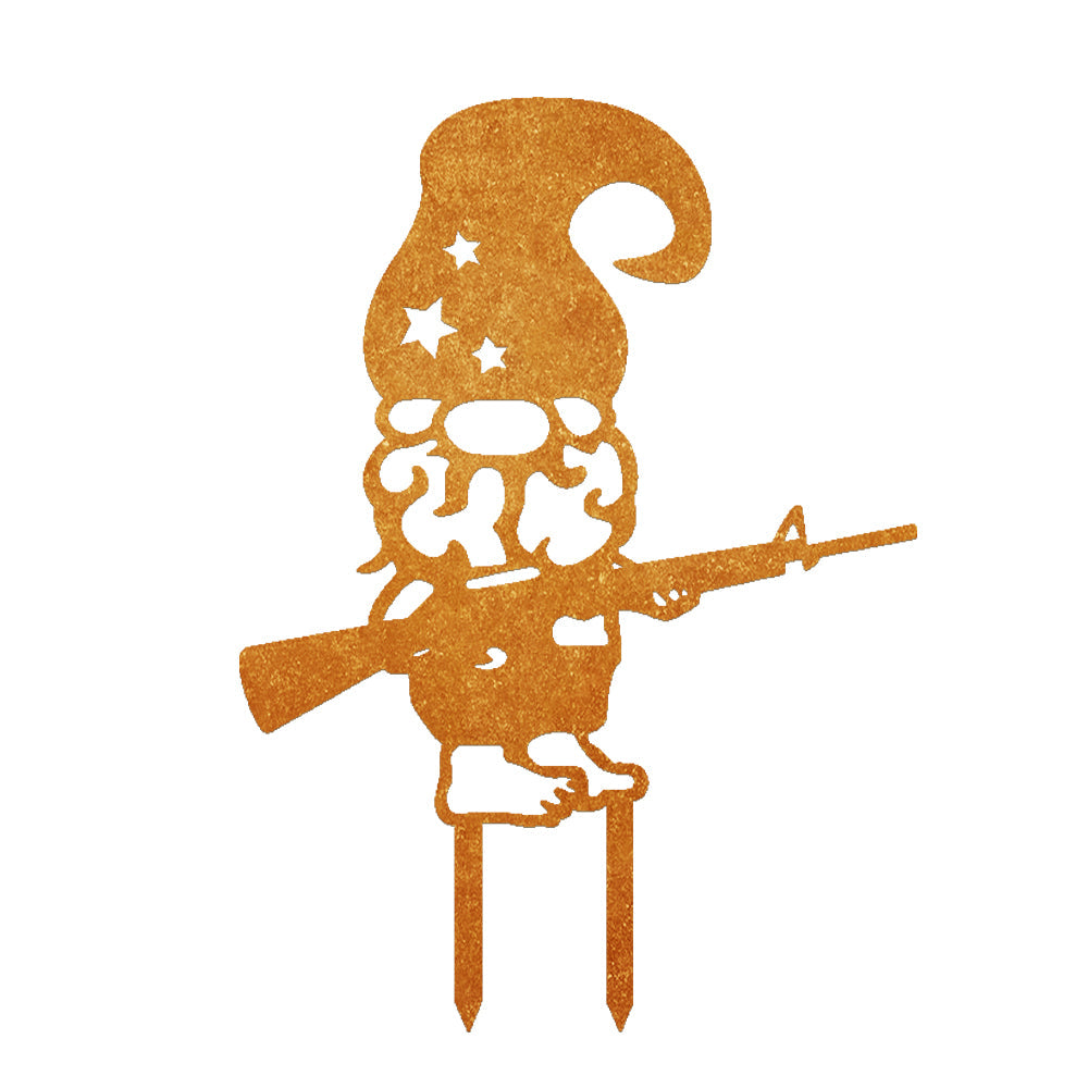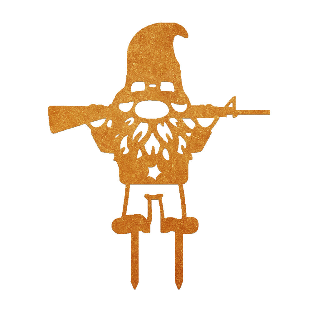 Zwerg mit Gewehr Metall Gartenpfahl