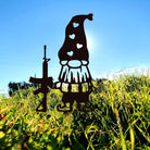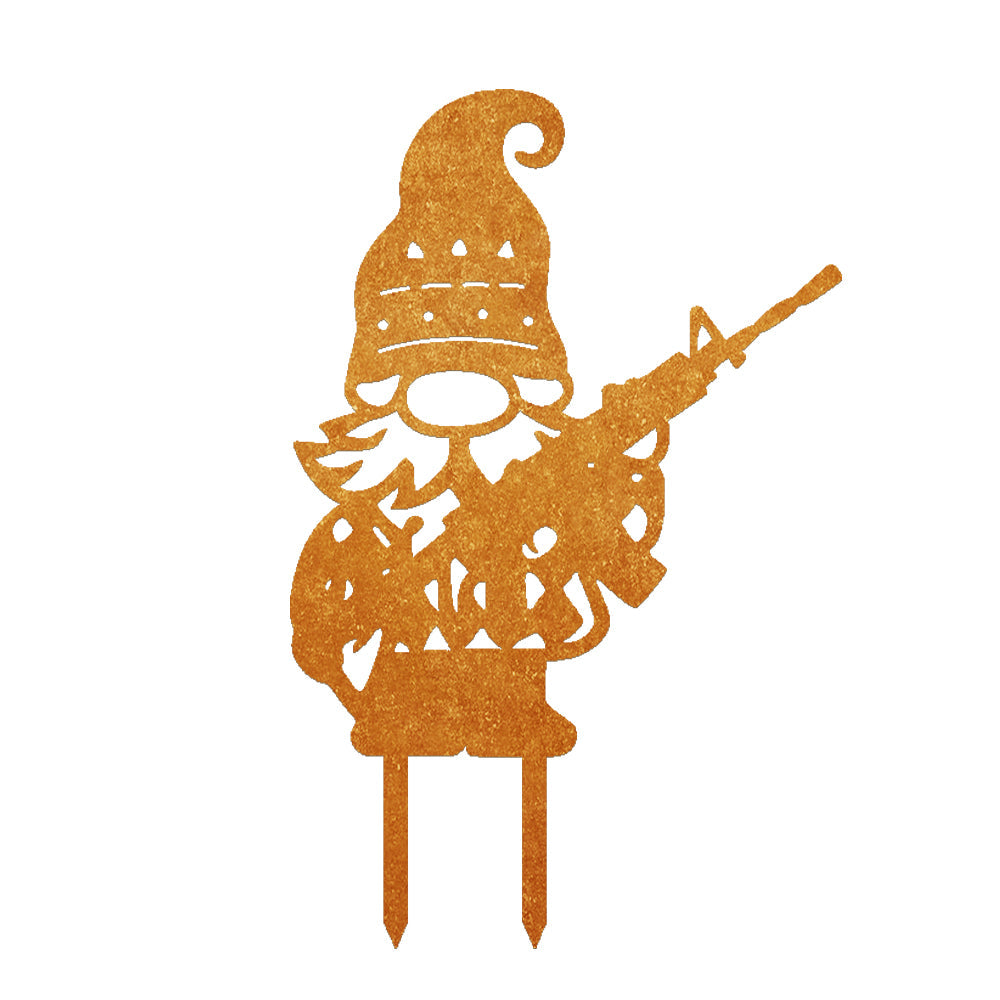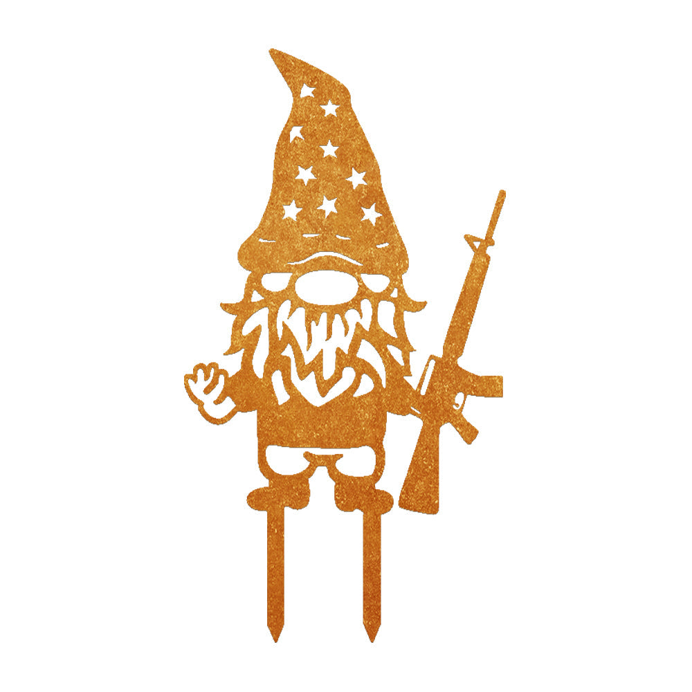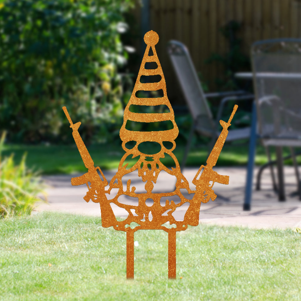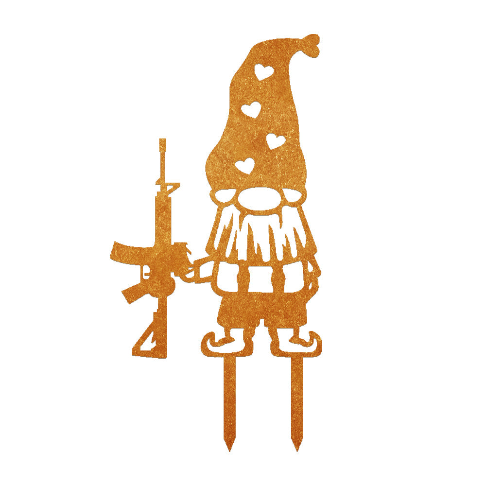 Zwerg mit Gewehr Metall Gartenpfahl