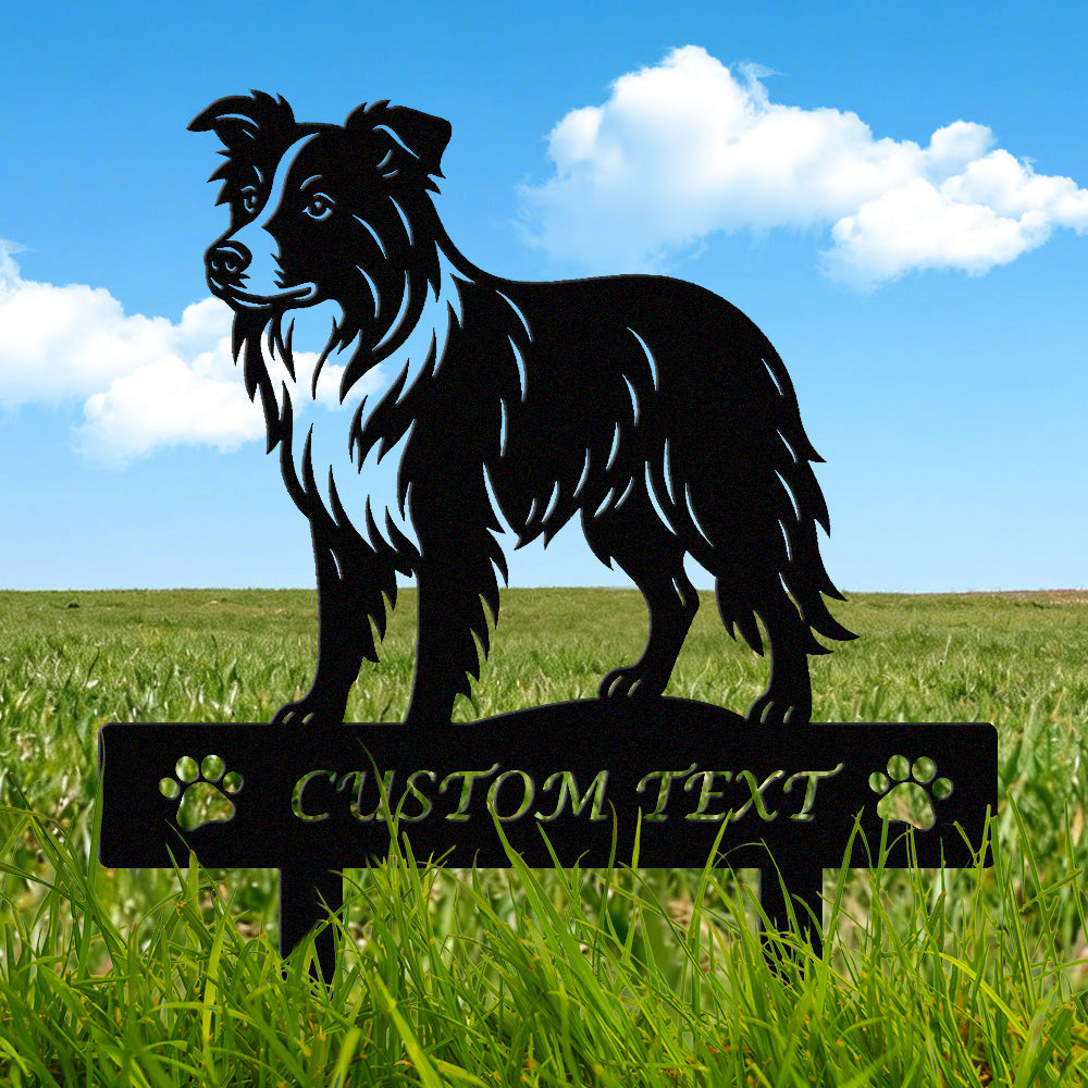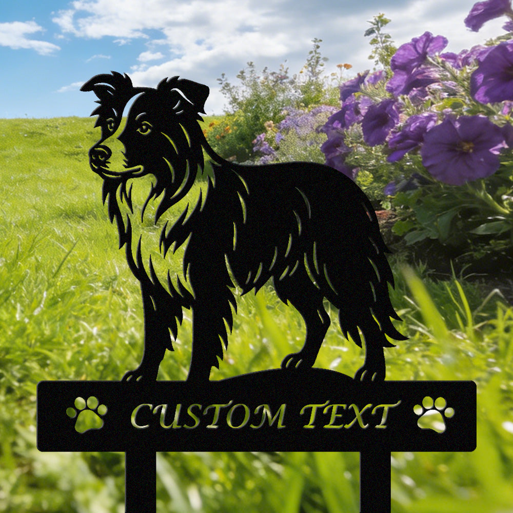 Border Collie Individuell gestalteter Hunde Silhouette Metall Gartenpfahl