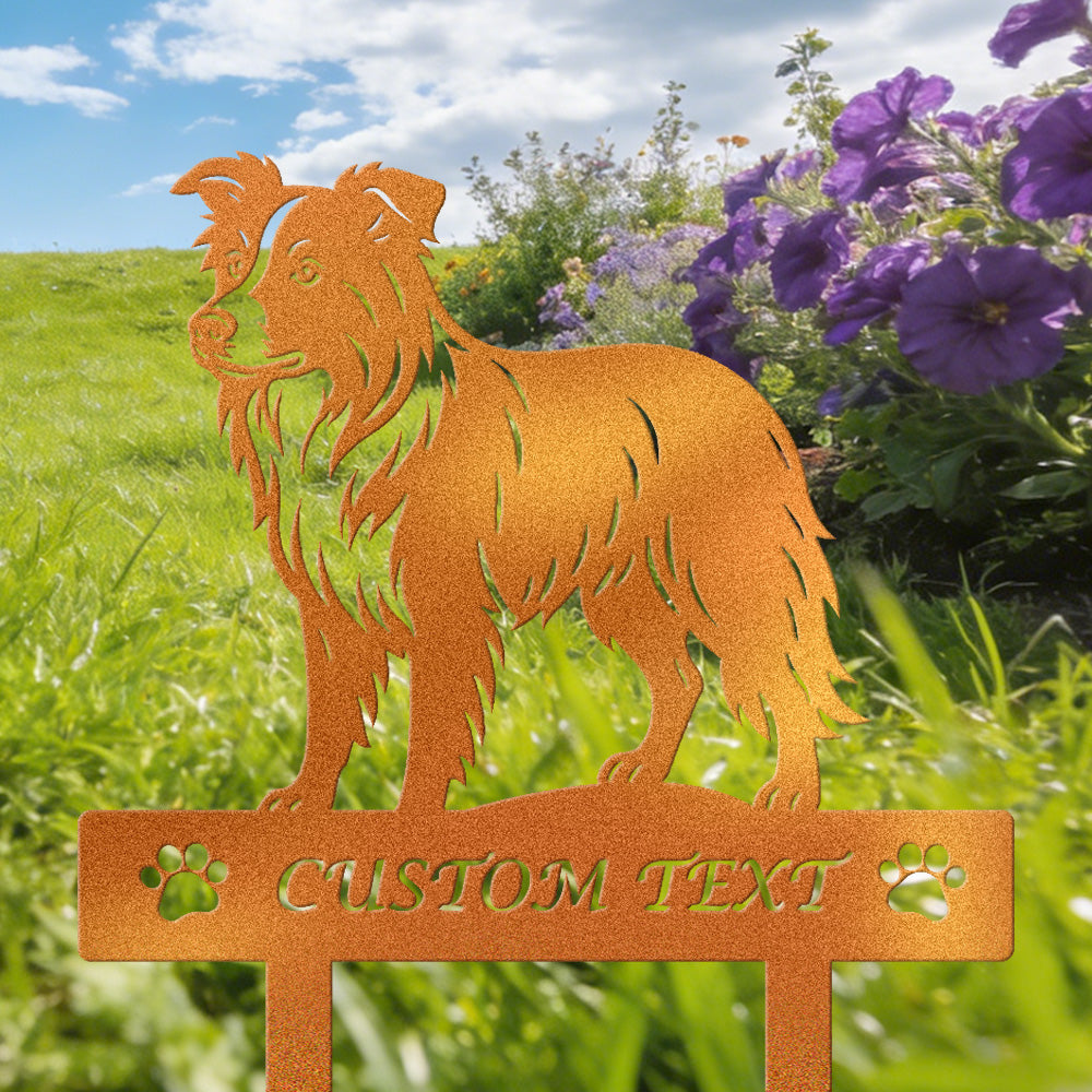 Shetland-Schäferhund Individuell gestalteter Hunde Silhouette Metall Gartenpfahl