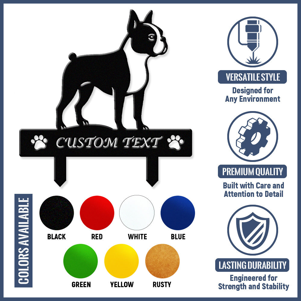 Boston Terrier Individuell gestalteter Hunde Silhouette Metall Gartenpfahl