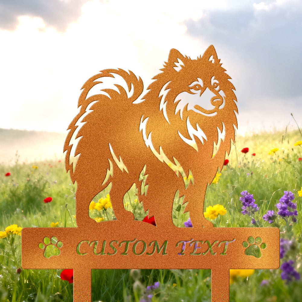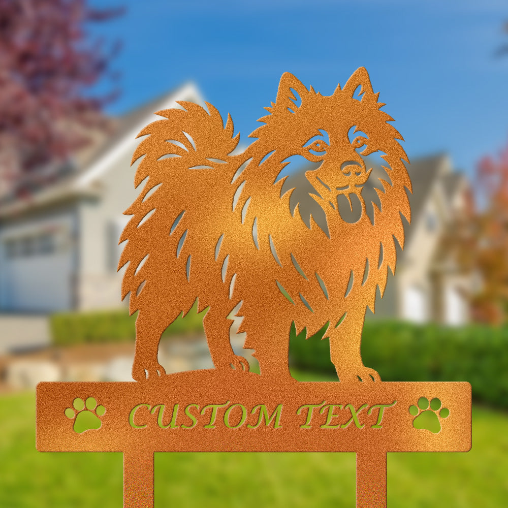 Pomeranian Individuell gestalteter Hunde Silhouette Metall Gartenpfahl