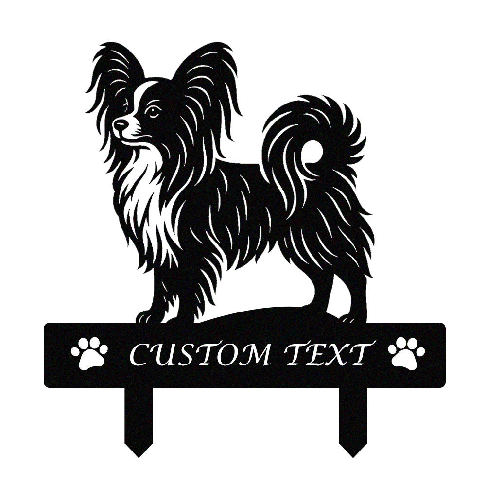 Papillon Individuell gestalteter Hunde Silhouette Metall Gartenpfahl