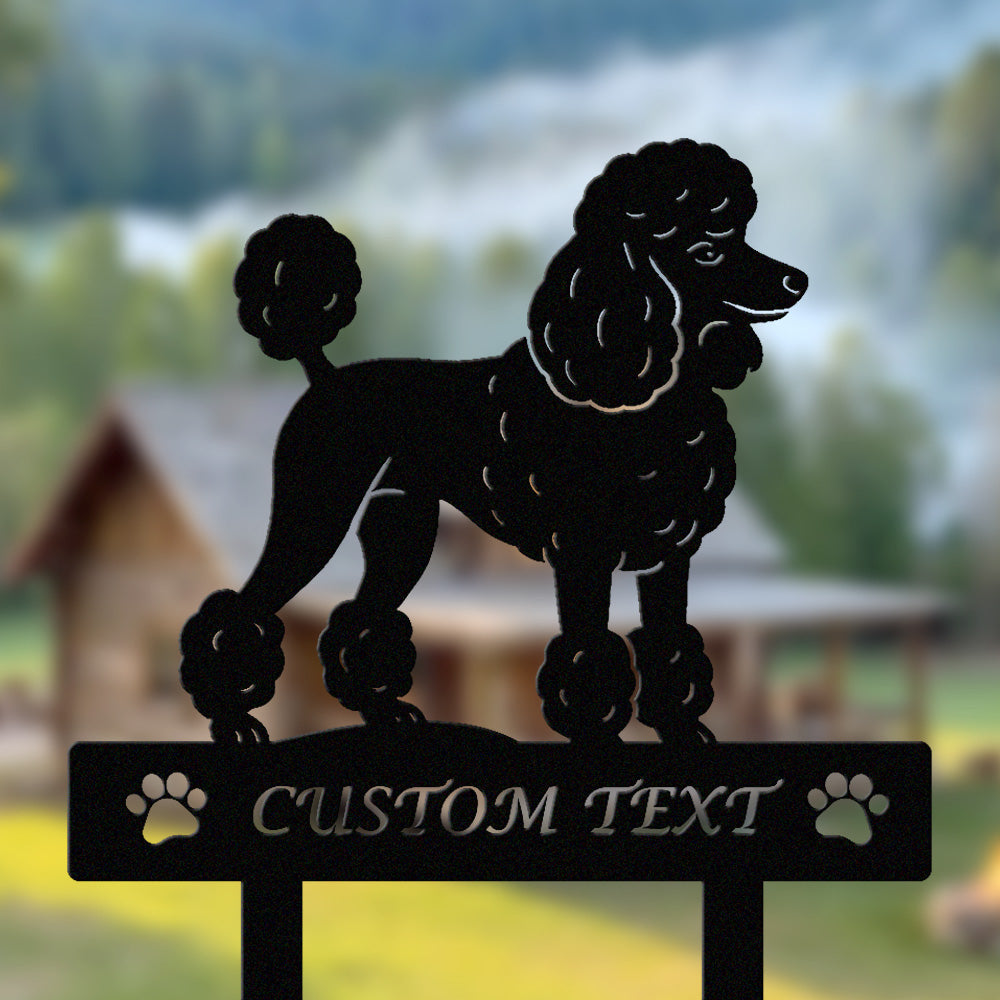 Pudel Individuell gestalteter Hunde Silhouette Metall Gartenpfahl
