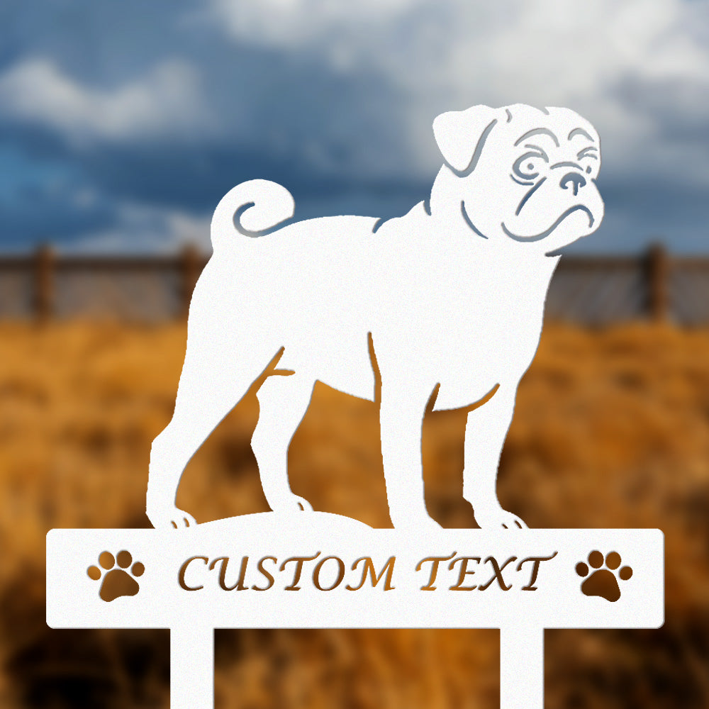 Mops Individuell gestalteter Hunde Silhouette Metall Gartenpfahl