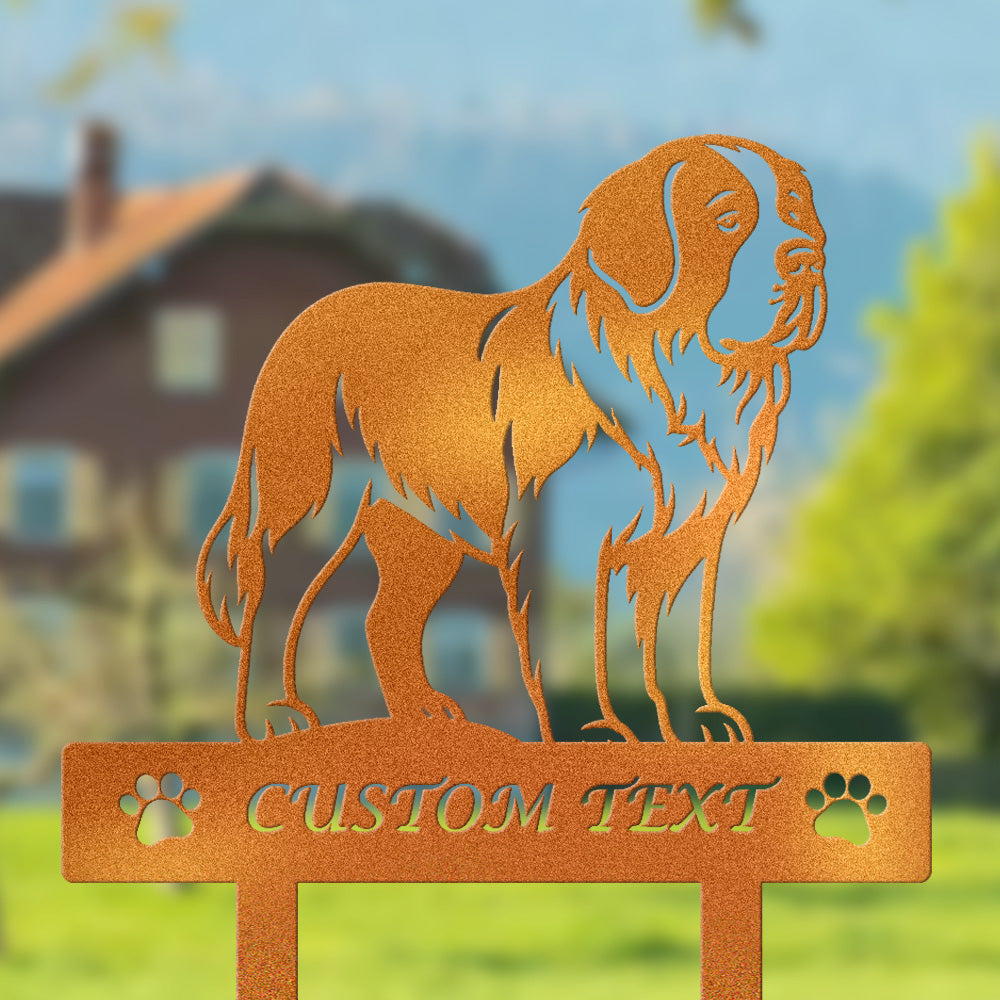 Bernhardiner Individuell gestalteter Hunde Silhouette Metall Gartenpfahl