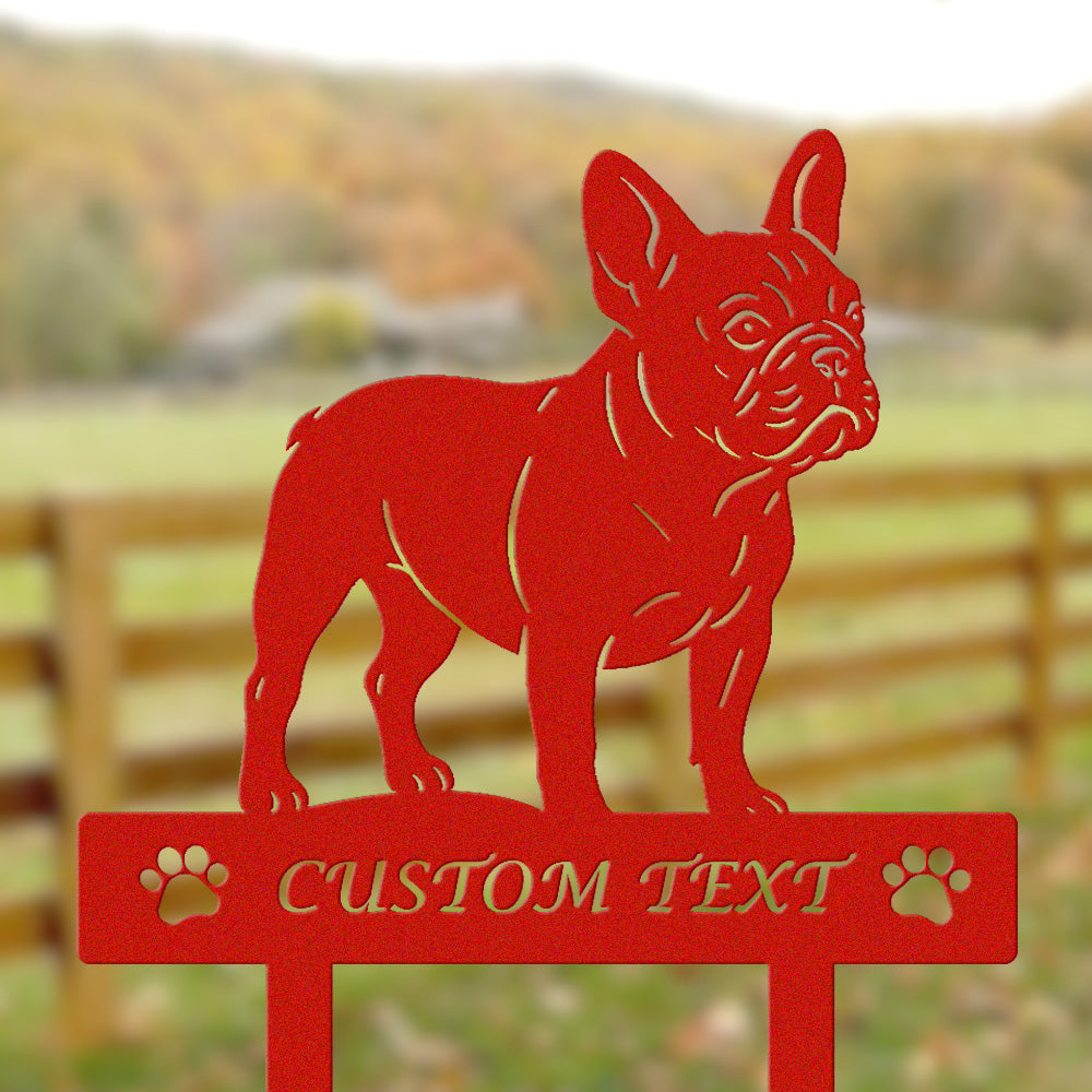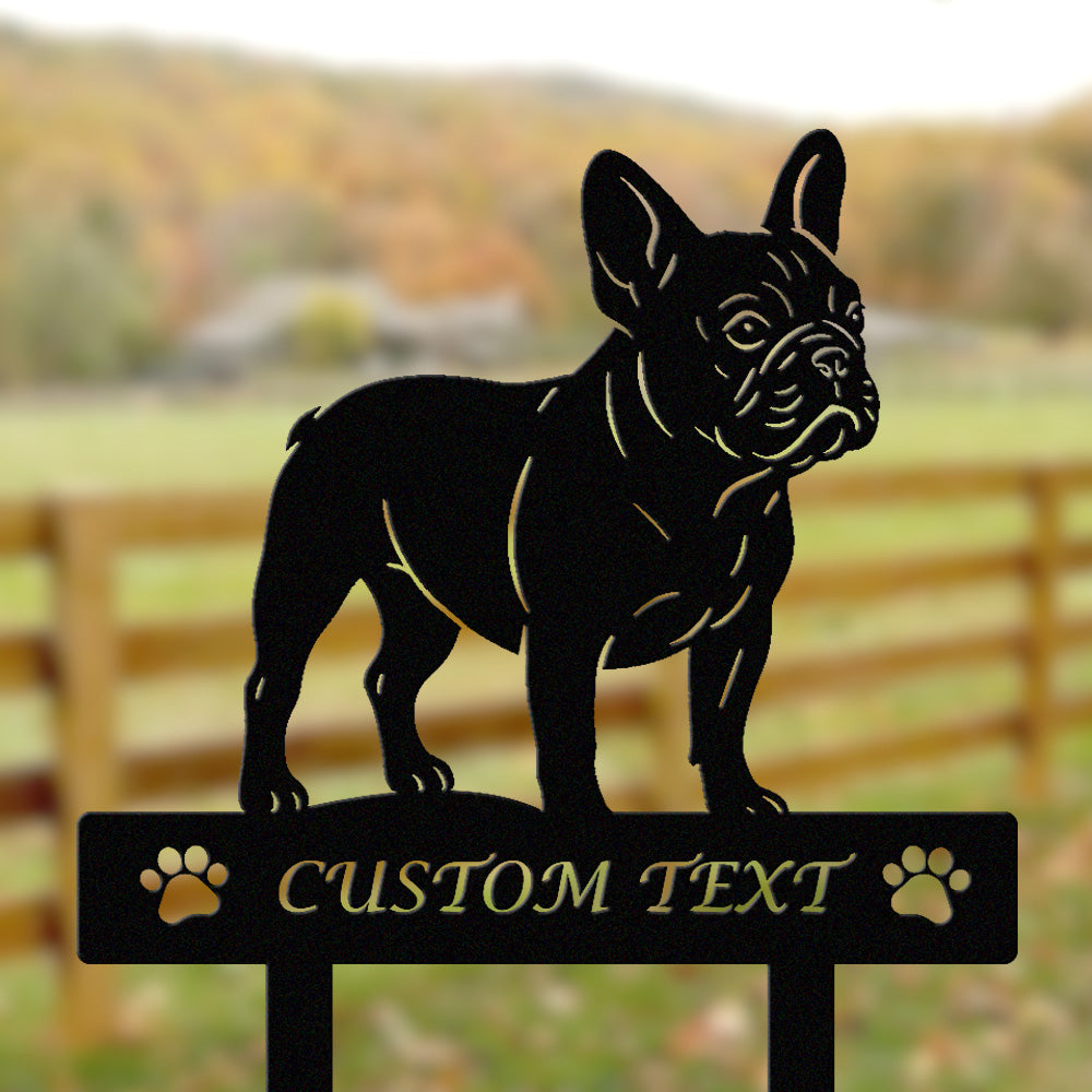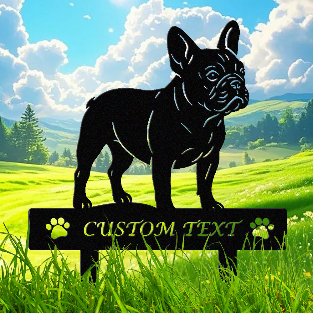 Französische Bulldogge Individuell gestalteter Hunde Silhouette Metall Gartenpfahl