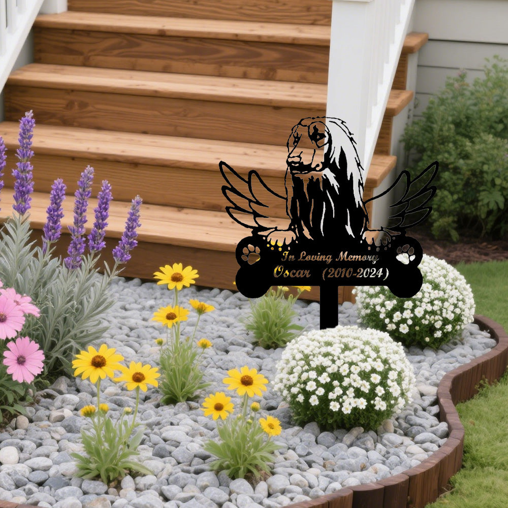 Afghanischer Windhund Individueller Gedenkpfahl mit Flügeln