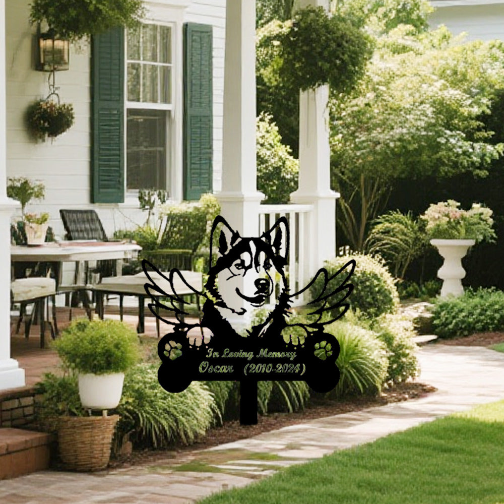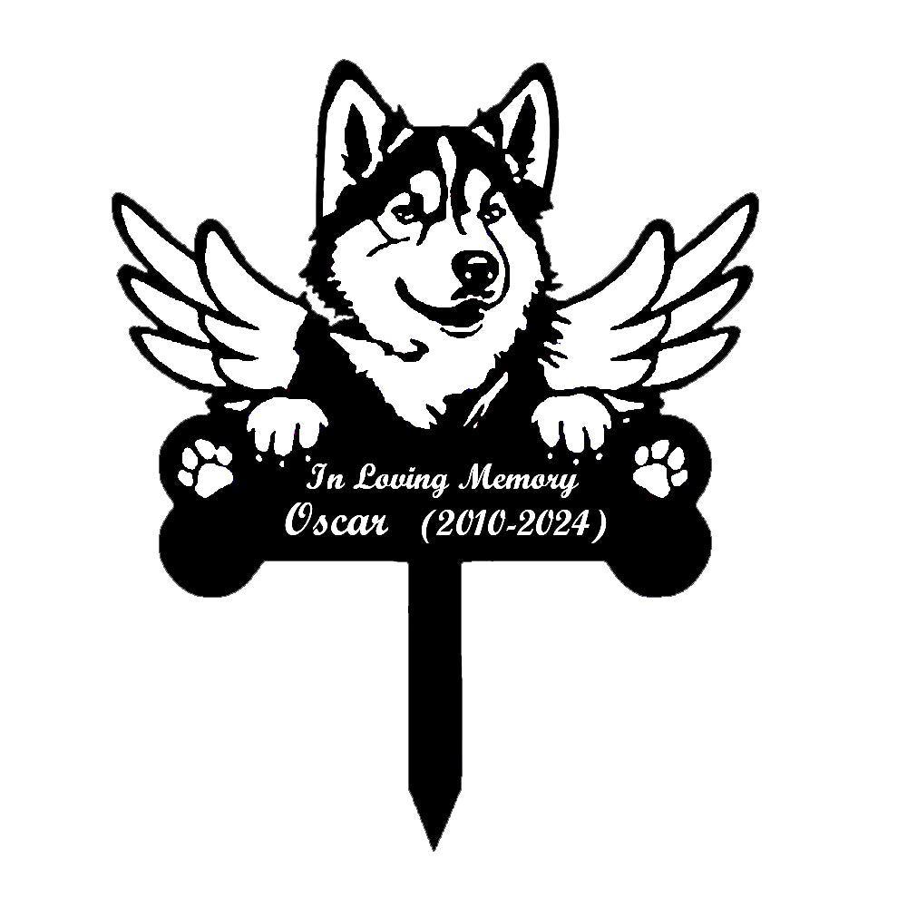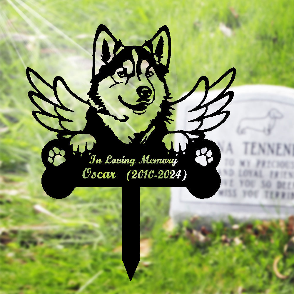 Alaskan Malamute Individueller Gedenkpfahl mit Flügeln