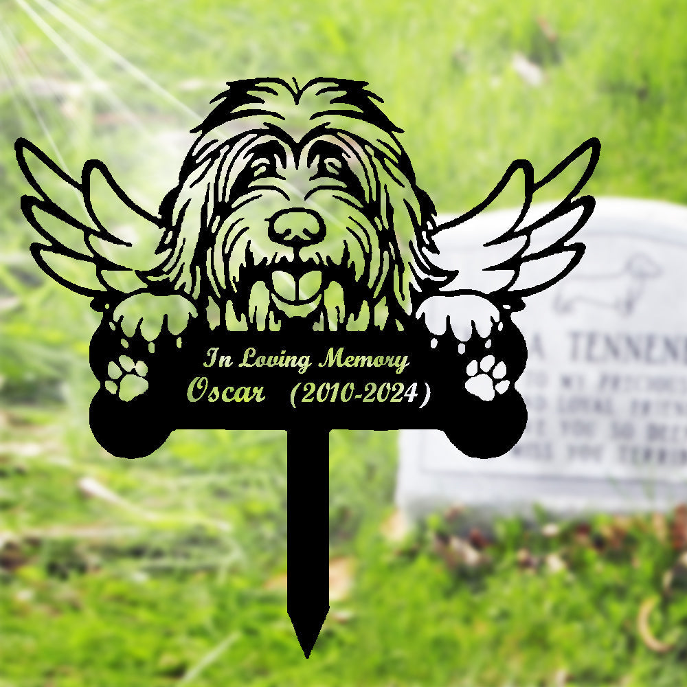 Bergamasker Hirtenhund Individueller Gedenkpfahl mit Flügeln