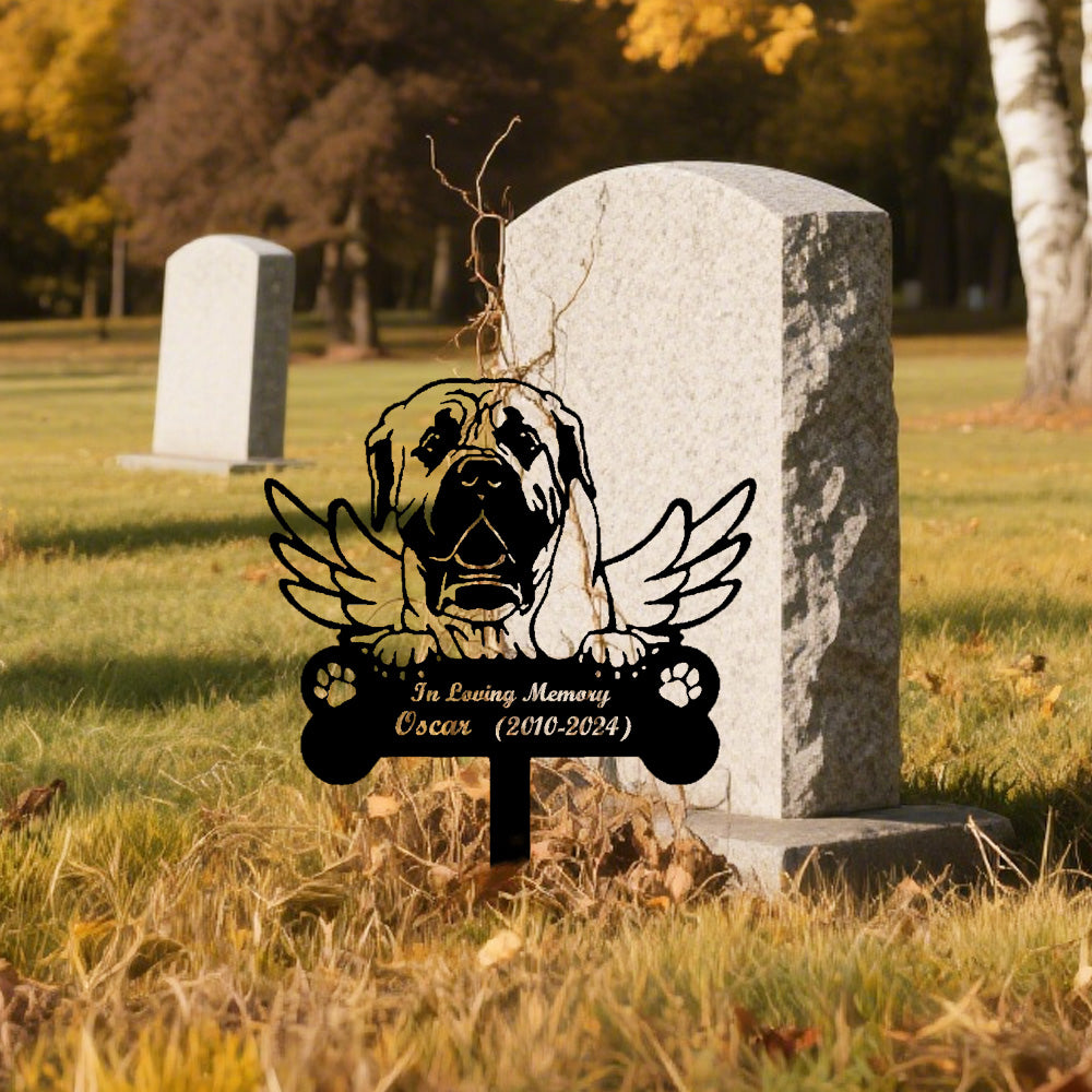 Boerboel Individueller Gedenkpfahl mit Flügeln