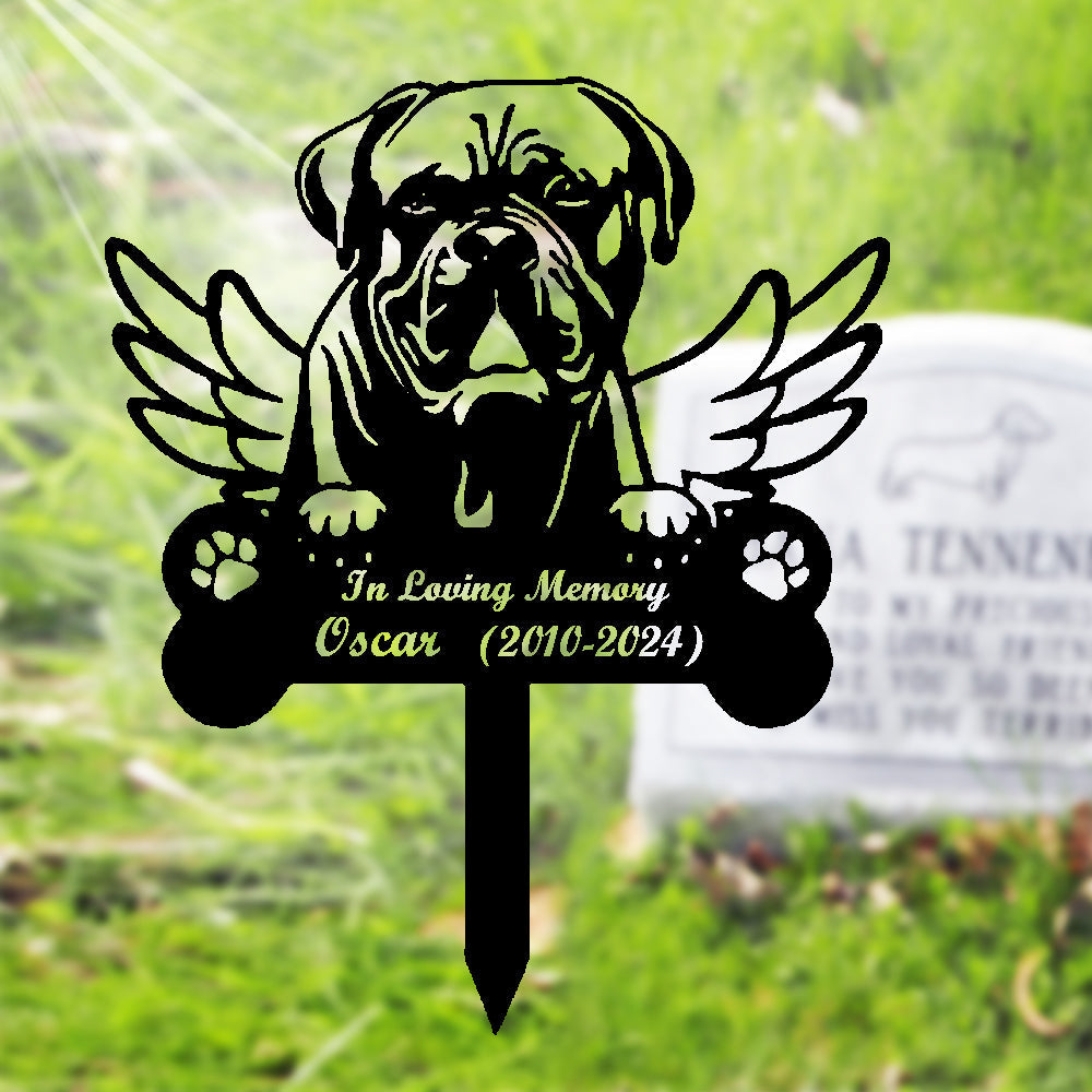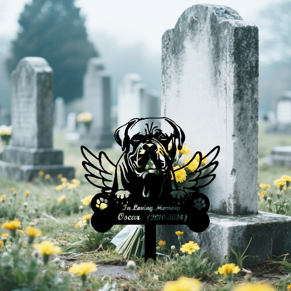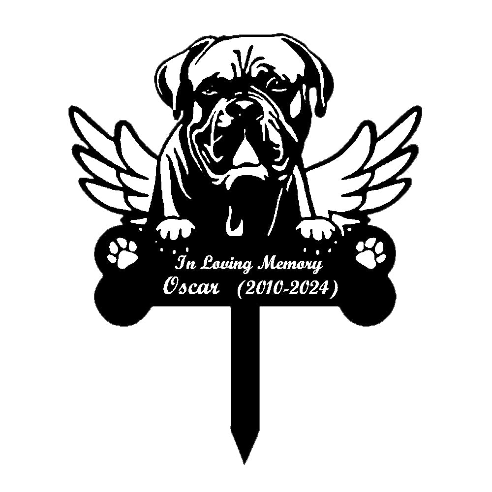 Bordeauxdogge Individueller Gedenkpfahl mit Flügeln