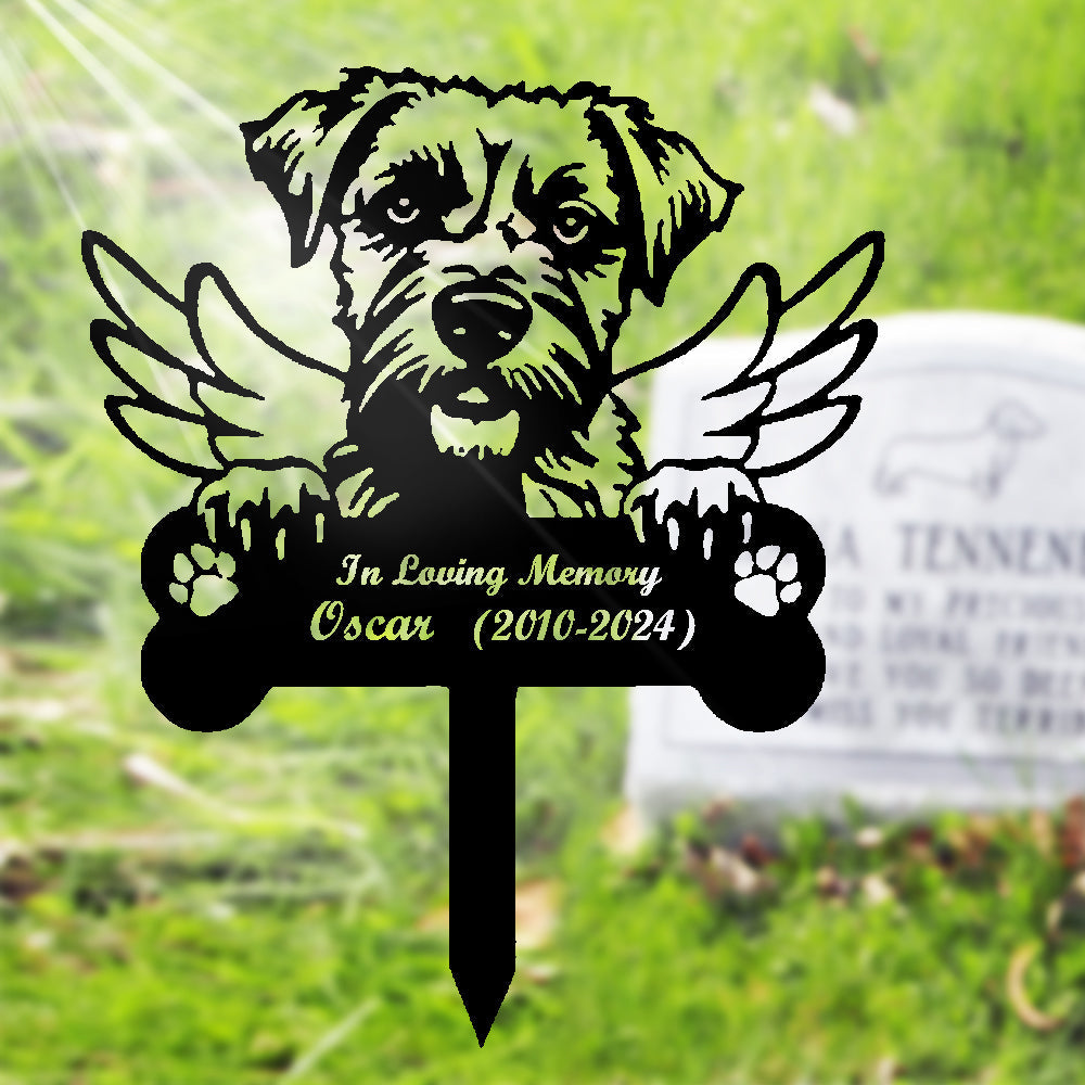Border Terrier Individueller Gedenkpfahl mit Flügeln