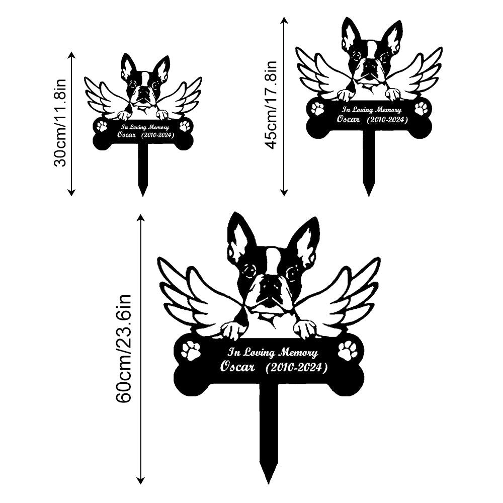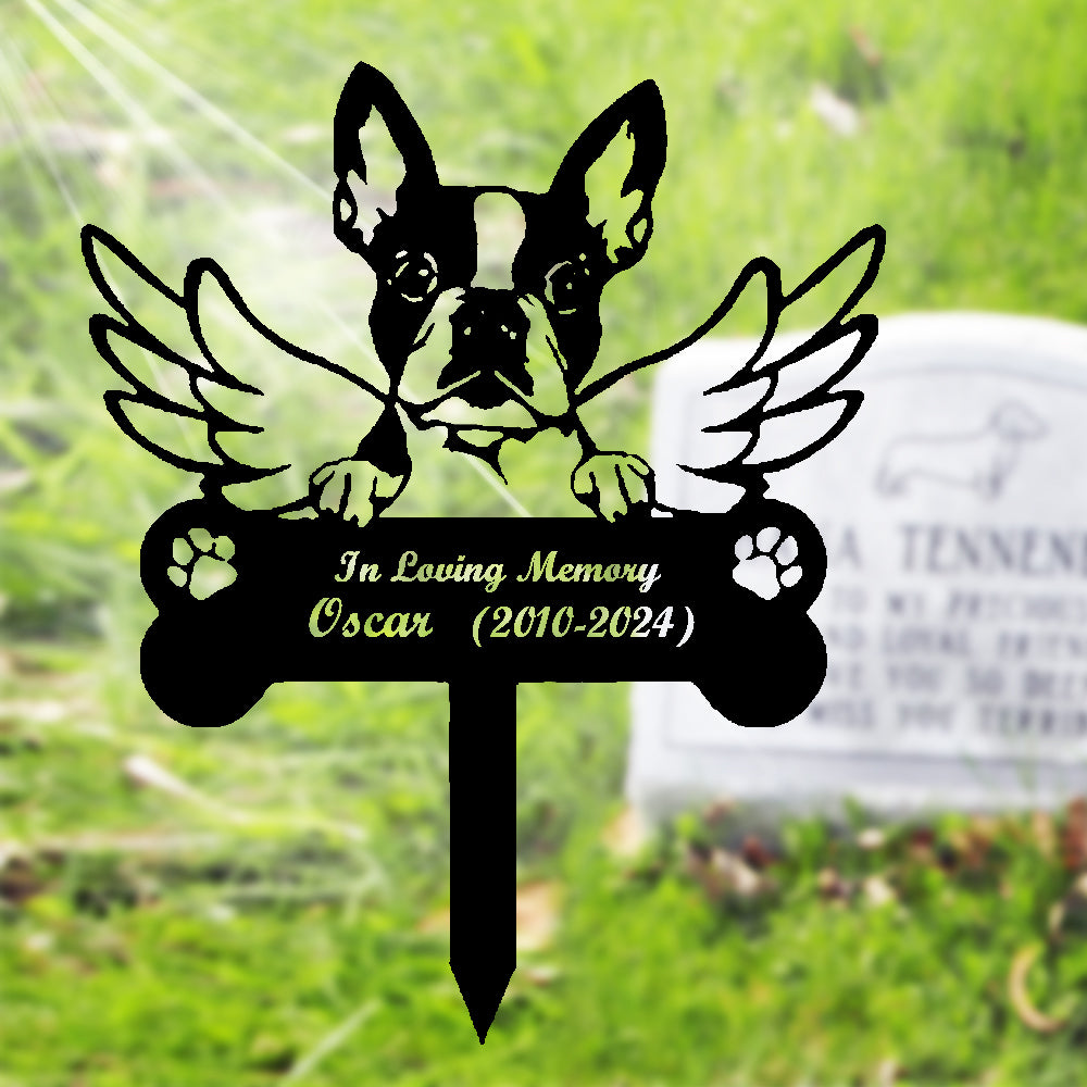 Boston Terrier Individueller Gedenkpfahl mit Flügeln