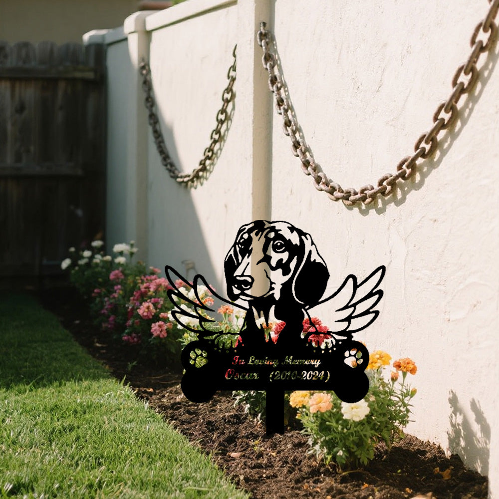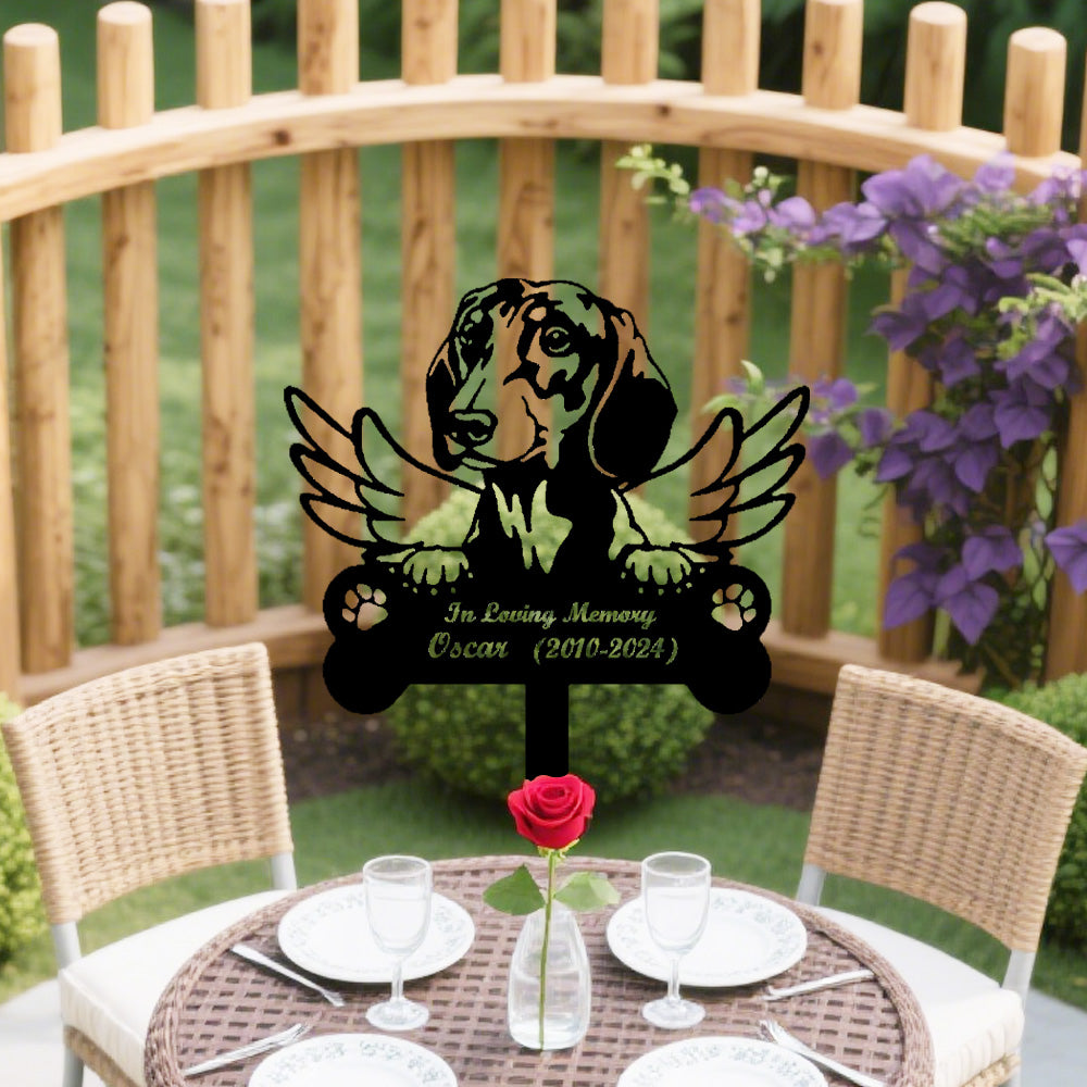 Dachshund Individueller Gedenkpfahl mit Flügeln